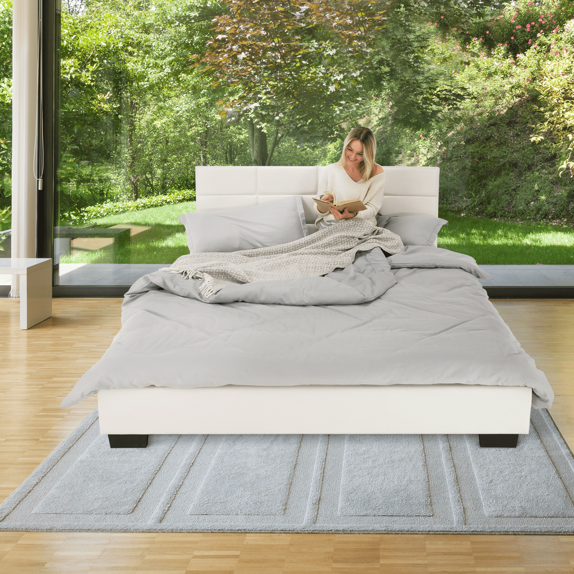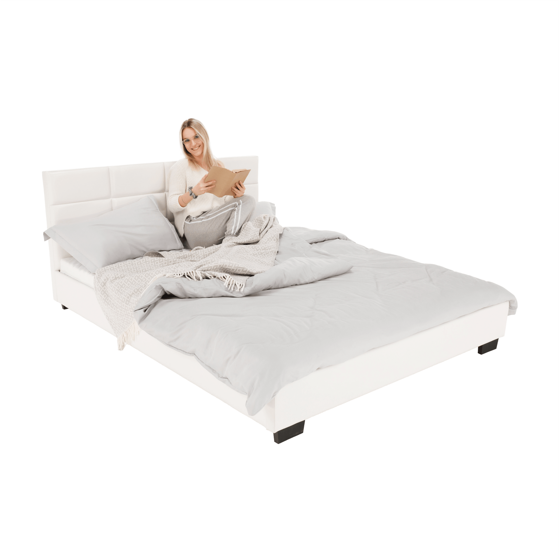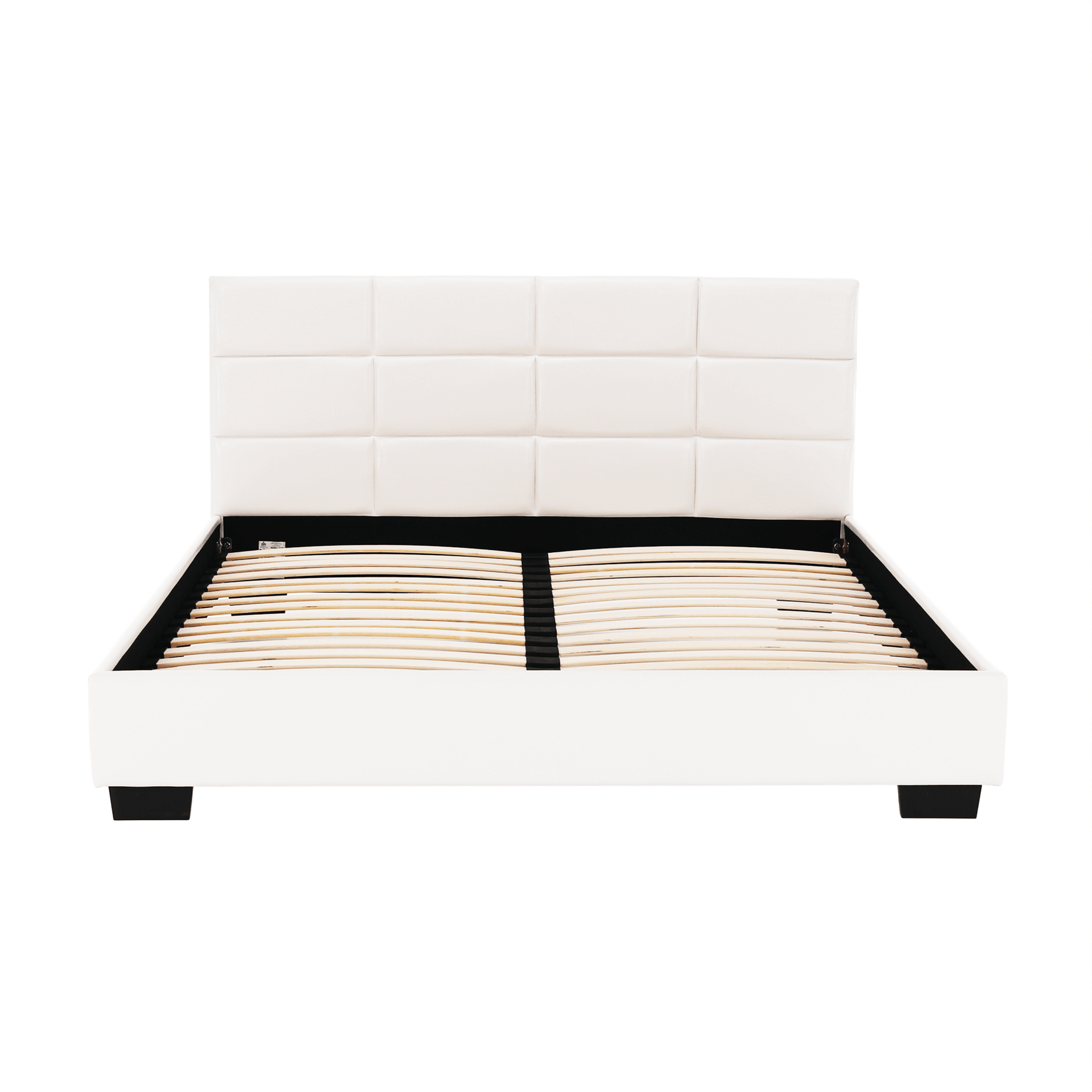 Pat MIKEL cu tăblia matlasată, cu somieră. Culoare piele eco albă.