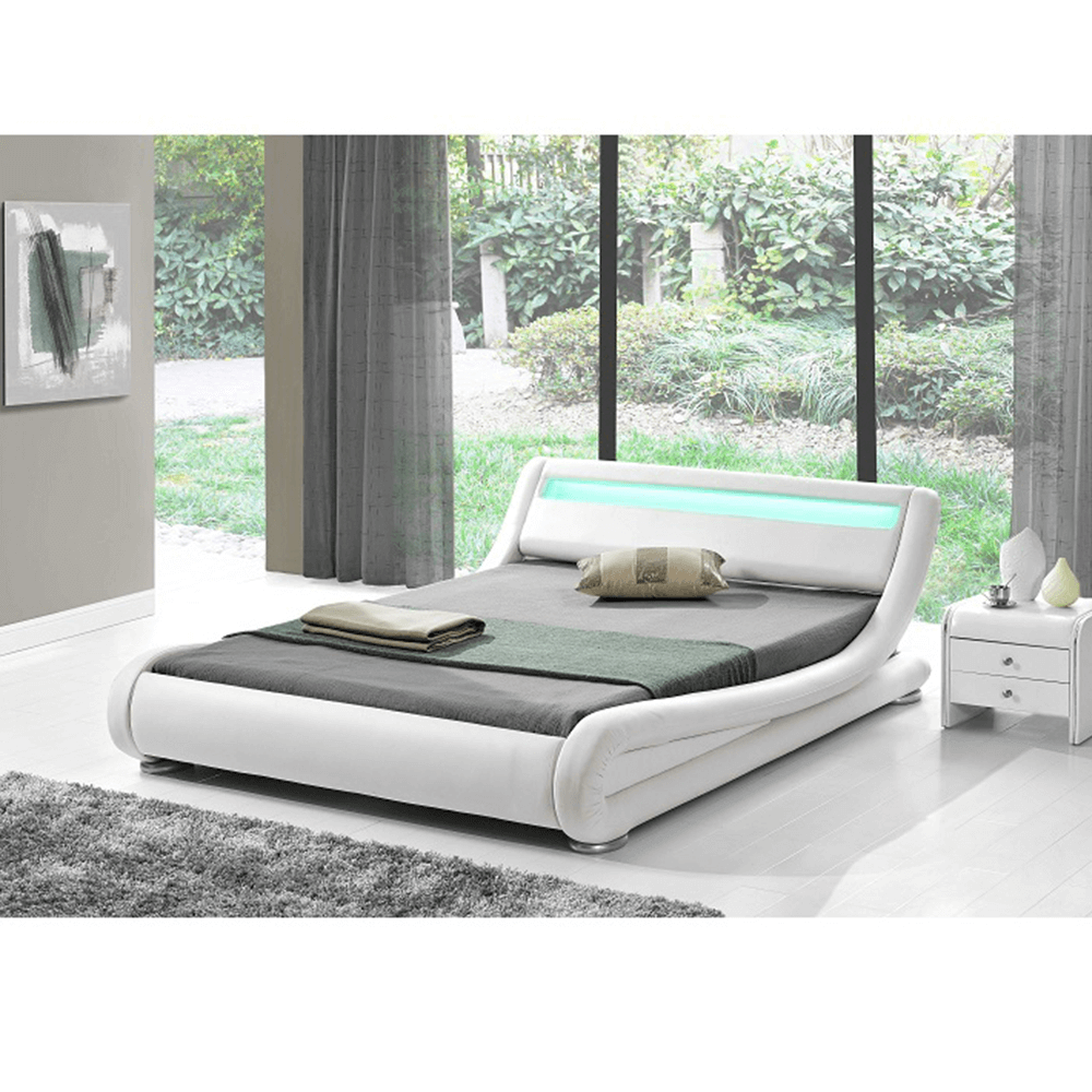 Pat modern cu somieră lamelară şi iluminare RGB LED în tăblia patului