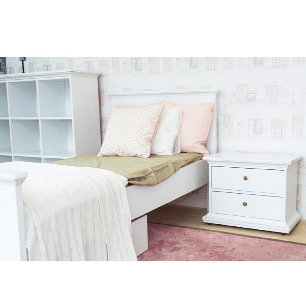 Pat cu spaţiu de depozitare, 90x200, alb, LUSY