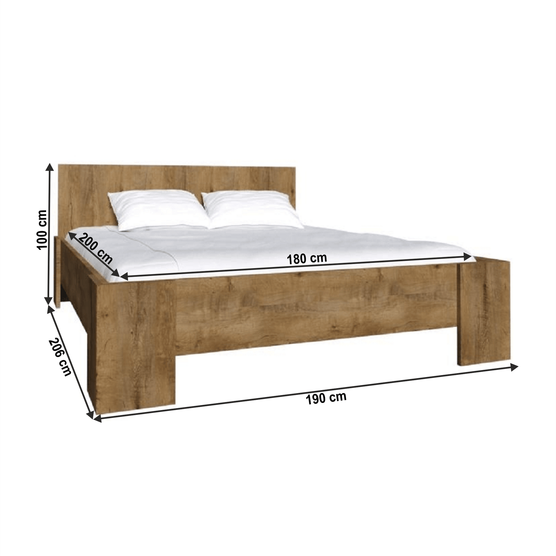 MONTANA ansamblu de mobilier modern potrivit pentru amenajarea livingului sau a dormitorului, material: PAL melaminat, margini ABS, culoare: stejar lefkas închis. Pat matrimonial 160 sau 180 este livrat cu somieră dar fără saltea. Saltea cu dimensiuni 160x200 cm sau 180x200 cm se poate comanda din oferta noastră din paginile 184 şi 185.
