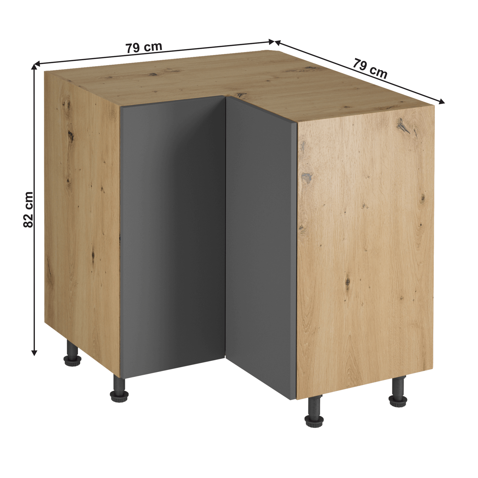 - Dulap de colţ, stejar artizanal / gri mat, LANGEN D90N