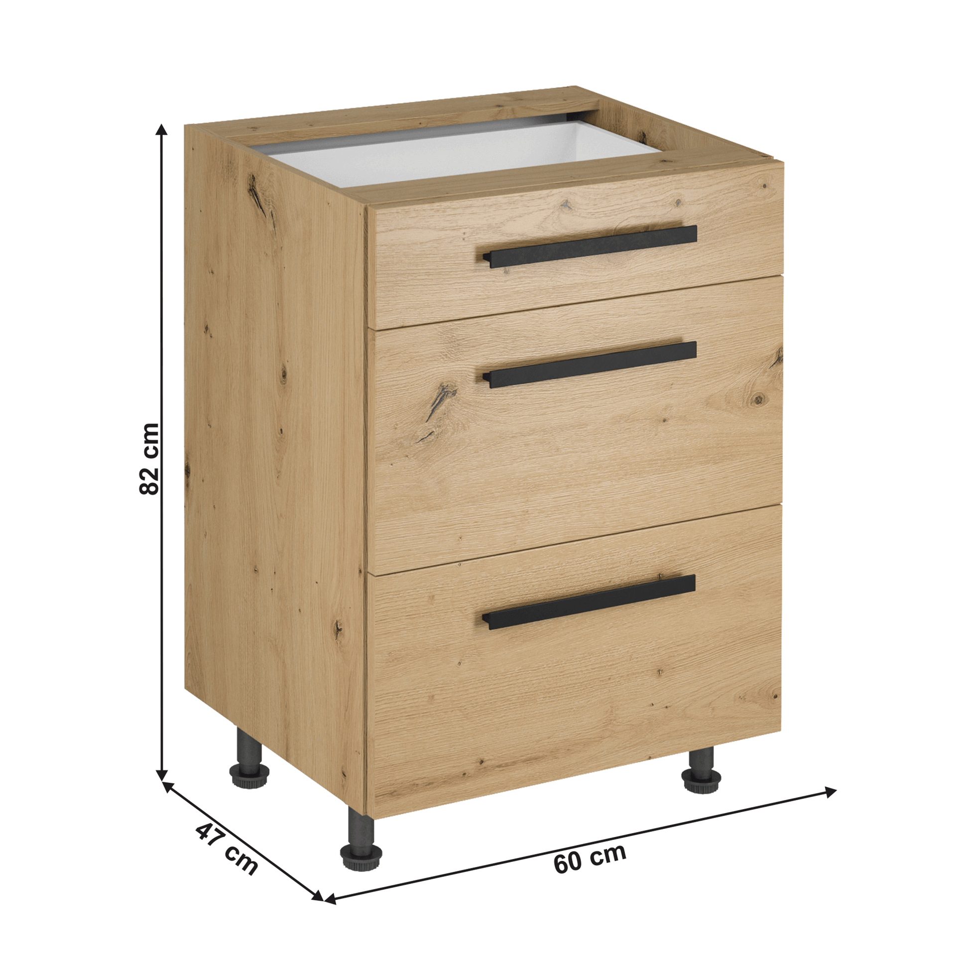 - Dulap de jos, stejar artizanal, cu mâner, LANGEN D60S3