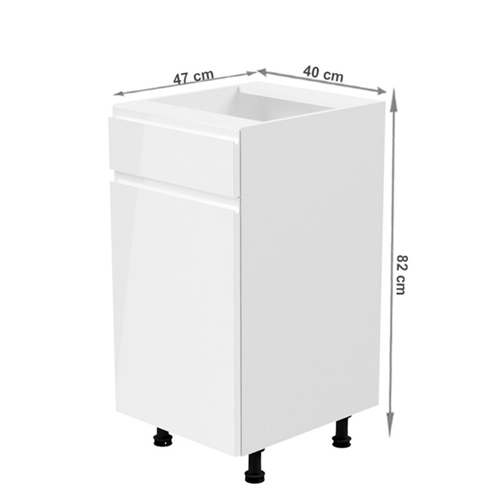 - Dulap inferior, alb/alb extra lucios, de stânga, AURORA D40S2