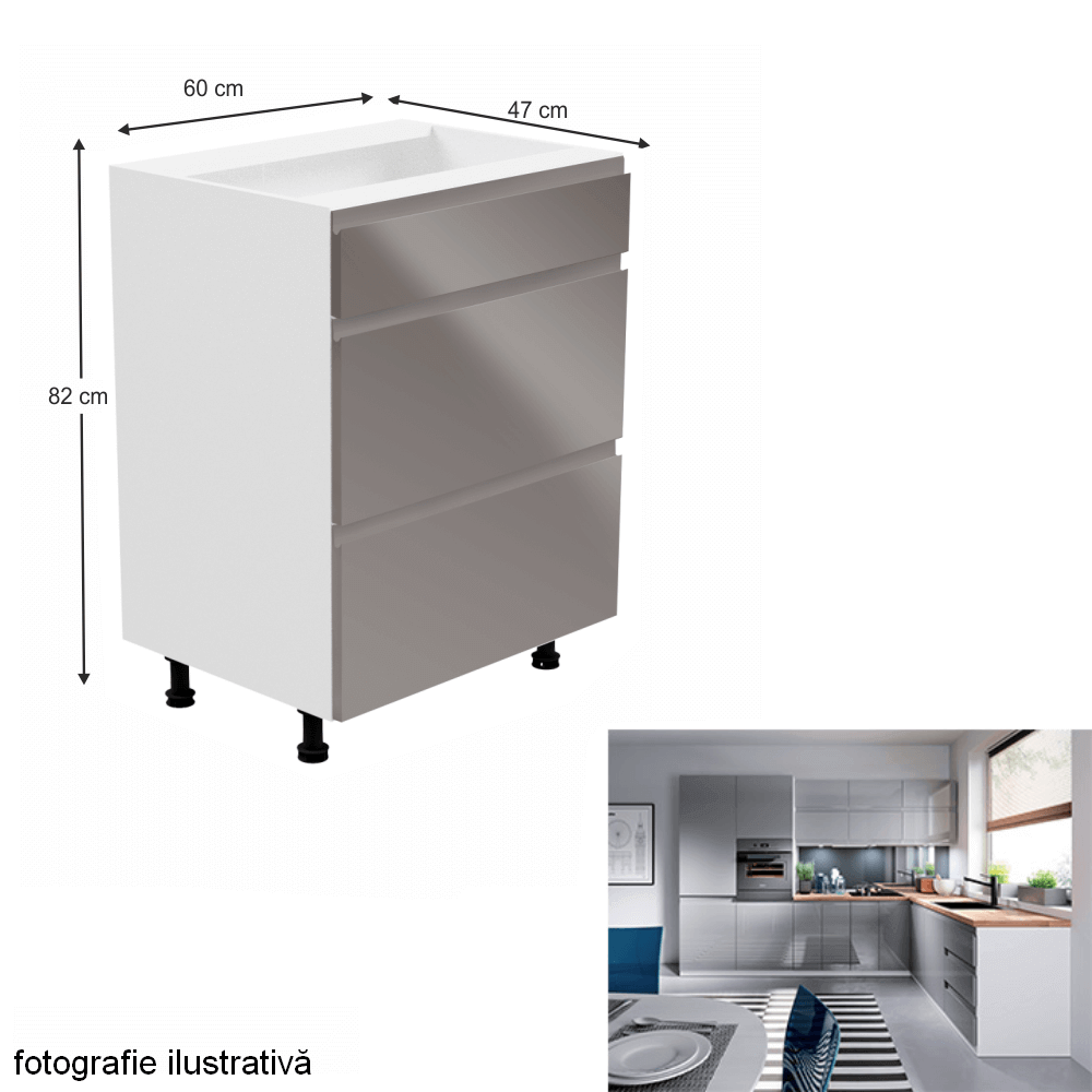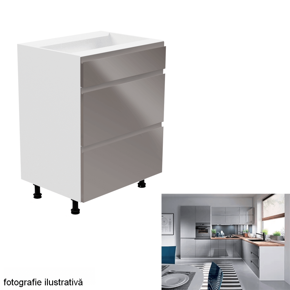 - Dulap inferior, alb/gri extra lucios, AURORA D60S3