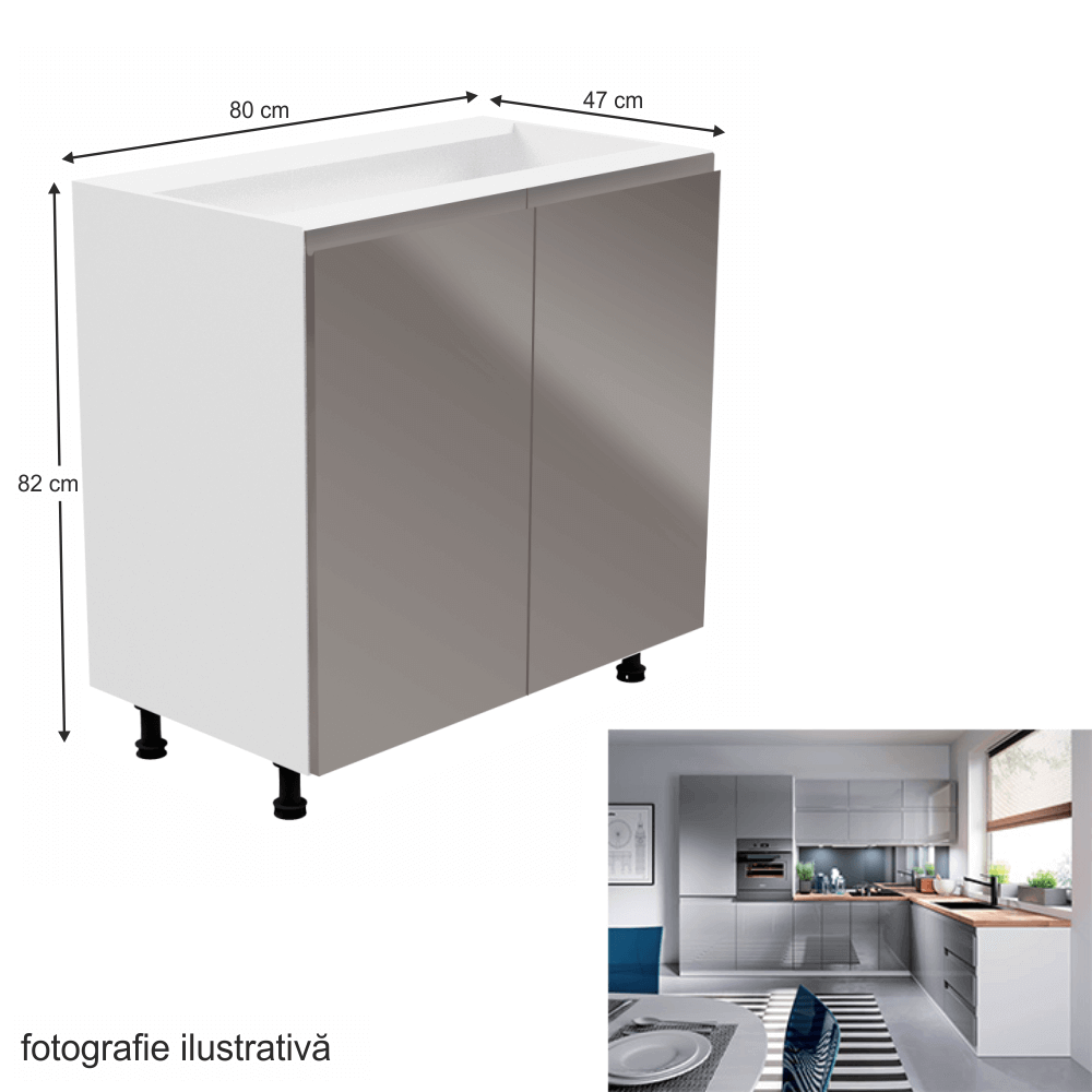 - Dulap inferior, alb/gri extra lucios, AURORA D80