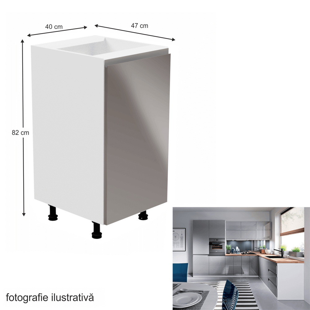 - Dulap inferior, alb/gri extra lucios, dreapta, AURORA D40