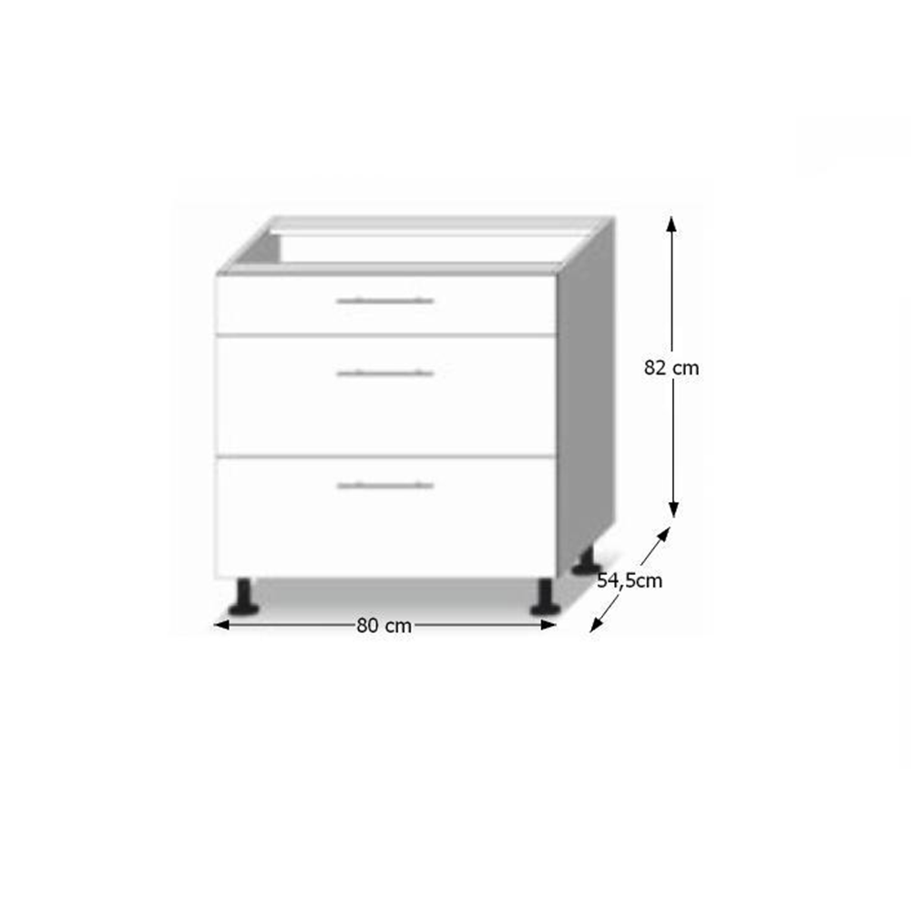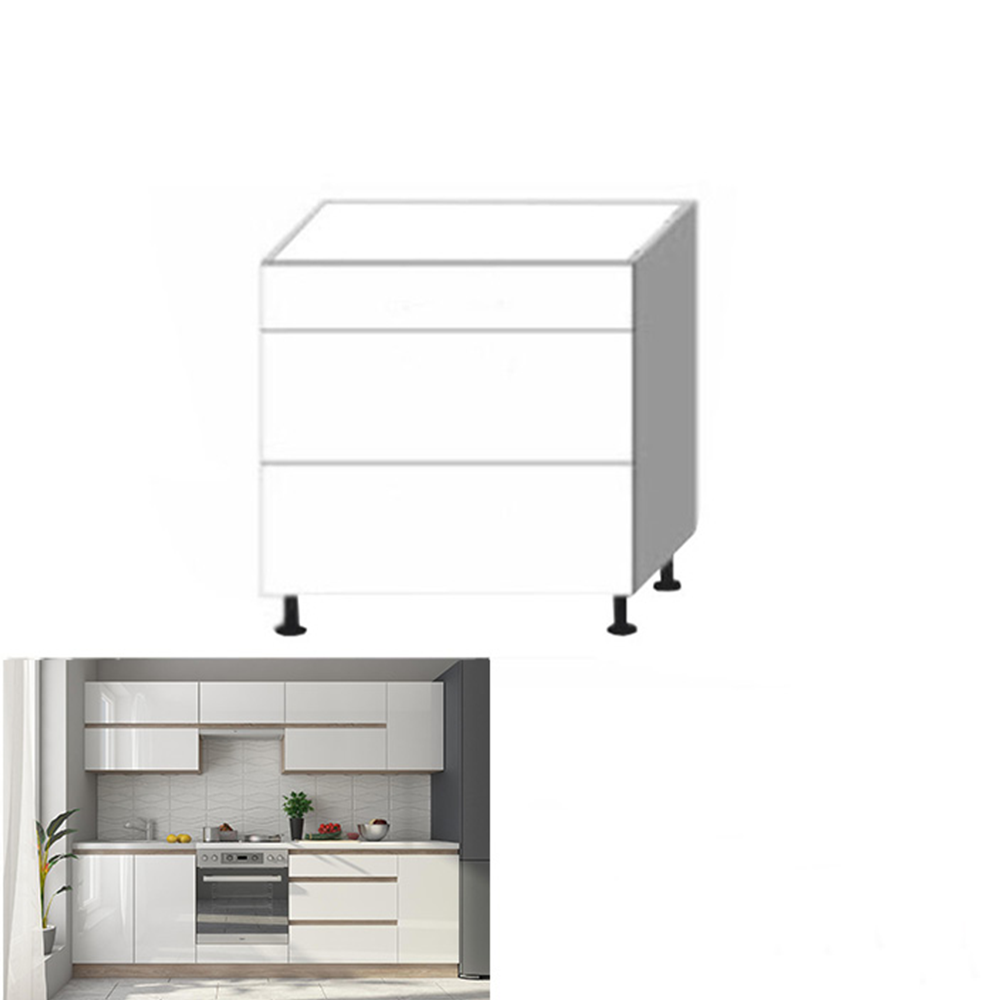 Dulap inferior cu 3 sertare din ansamblul de unităţi de bucătărie în stil şi finisaj modern.