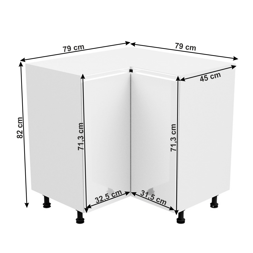 - Dulap inferior colţ, alb/alb luciu extra ridicat, AURORA D90N