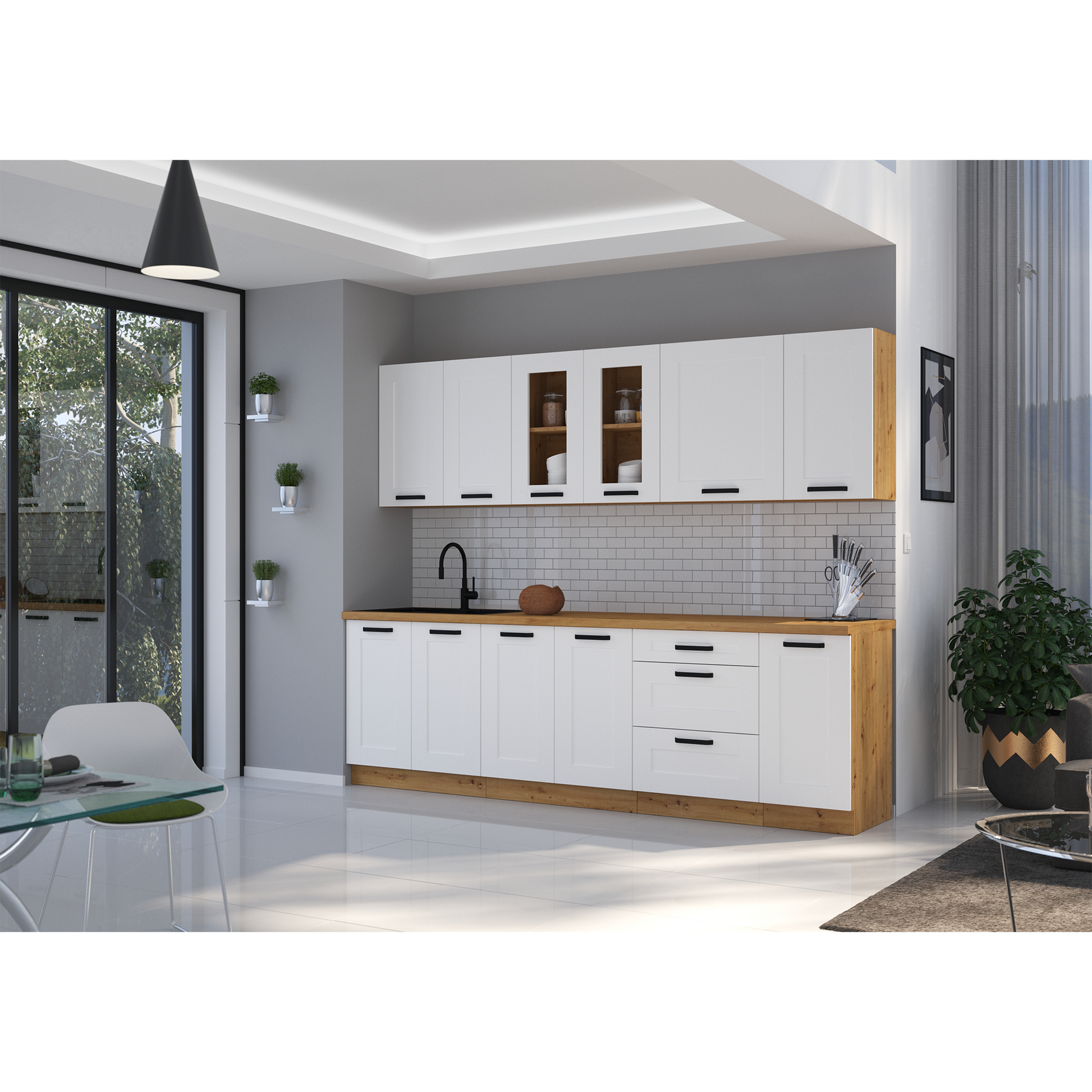- Dulap inferior cu coş glisant, alb/stejar artisan, LULA D15 CARGO