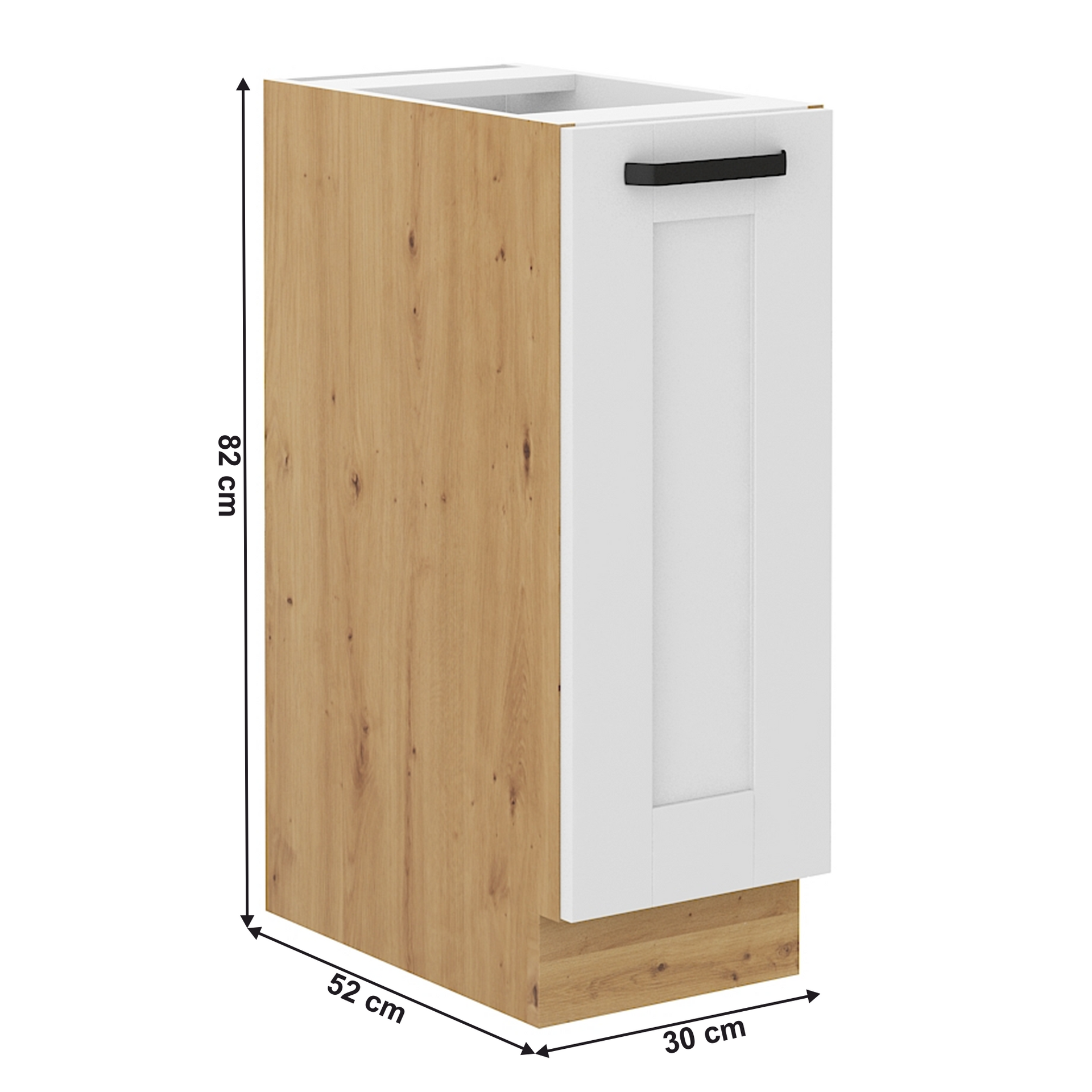 Dulap inferior cu coş glisant LULA 30 D CARGO Material: HDF laminat/MDF Culoare: albă/stejar artisan Dimensiuni (LxAxÎ): 30x52x82 cm Grosime cadru: 1,6 cm Grosime uşă: 2 cm Mânere metalice, Culoarea mânerului: neagră, Cu şină inferioară/plintă, Dulap fără blat, Design dinamic modern, Livrat dezasamblat, Opţiunea de a cumpăra o chiuvetă universală LAY ON Dulapurile inferioare sunt furnizate împreună cu şina inferioară, Fără blat de lucru. Opţiunea de a achiziţiona blat de lucru din stejar artisan sau marmură roma la preţul de 319/metru liniar. Opţiunea de a achiziţiona o chiuvetă universală LAY ON.