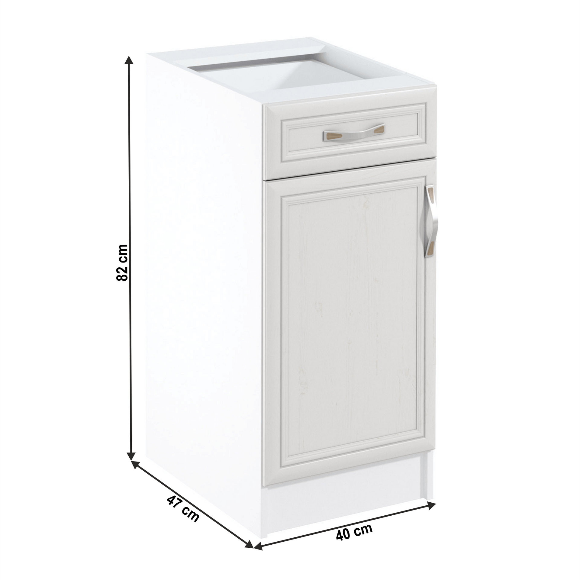 - Dulap inferior D40S1 cu sertar, model stânga, alb/pin Andersen, SICILIA