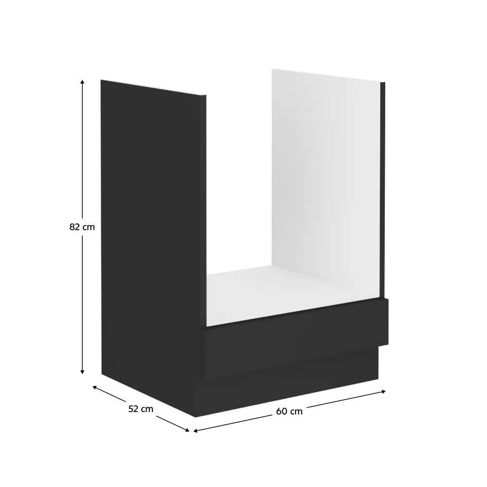 Material: DTD laminat Culoarea uşii: negru Culoarea corpului: negru mat Dimensiuni (Lxlxh): 60x52x82 cm Grosime material: 1,6 cm Pentru aragaz încorporat Cu şină de bază/plintă Design modern Fără blat Chiuvetă universală LAY ON disponibilă pentru achiziţionare Livrat dezasamblat Dulapurile din modularul inferior sunt furnizate inclusiv şina inferioară (plintă), fără blat. Blatul de lucru cu o grosime de 3,8 cm poate fi comandat separat în finisaj de tip stejar artisan la preţul de 339 EUR/ml.