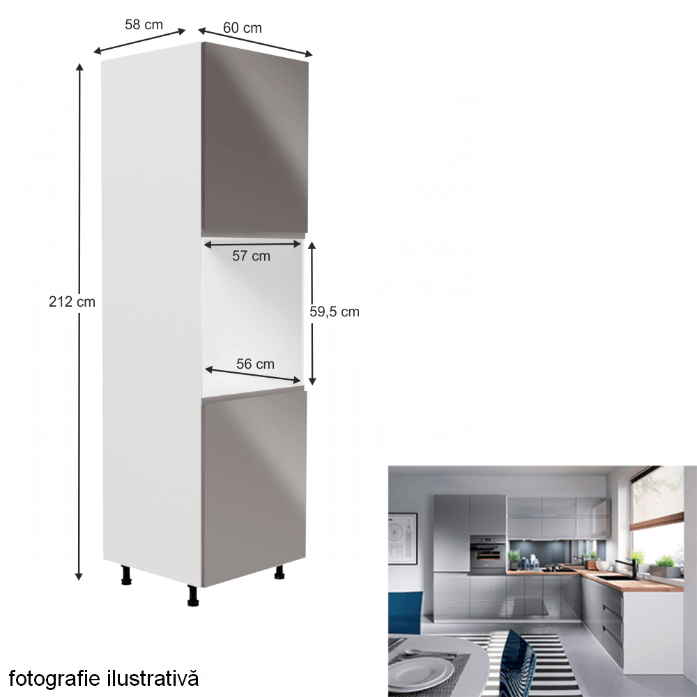- Dulap pentru alimente, alb/gri extra lucios, dreapta, AURORA D60P