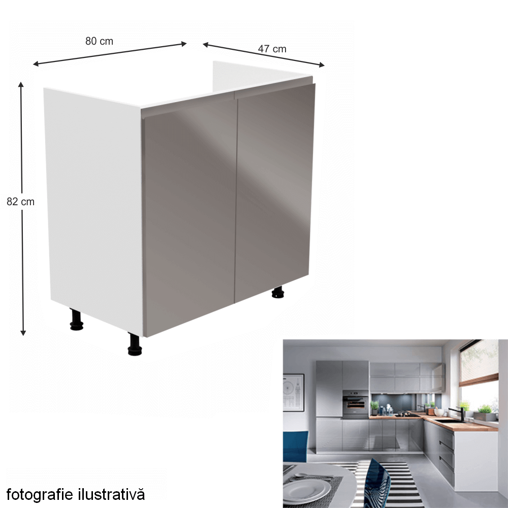 - Dulap pentru chiuvetă, alb/gri extra lucios, AURORA D80Z