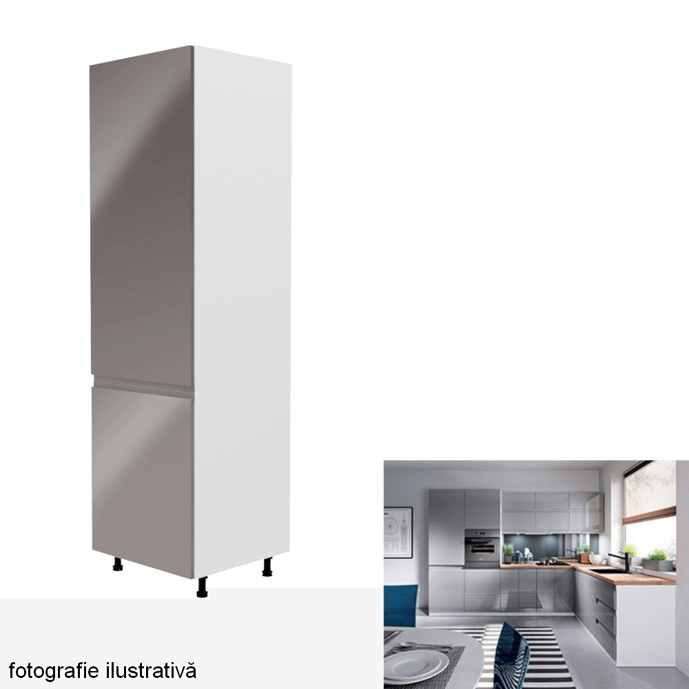 - Dulap pentru frigider, alb/gri extra lucios, stânga, AURORA D60ZL