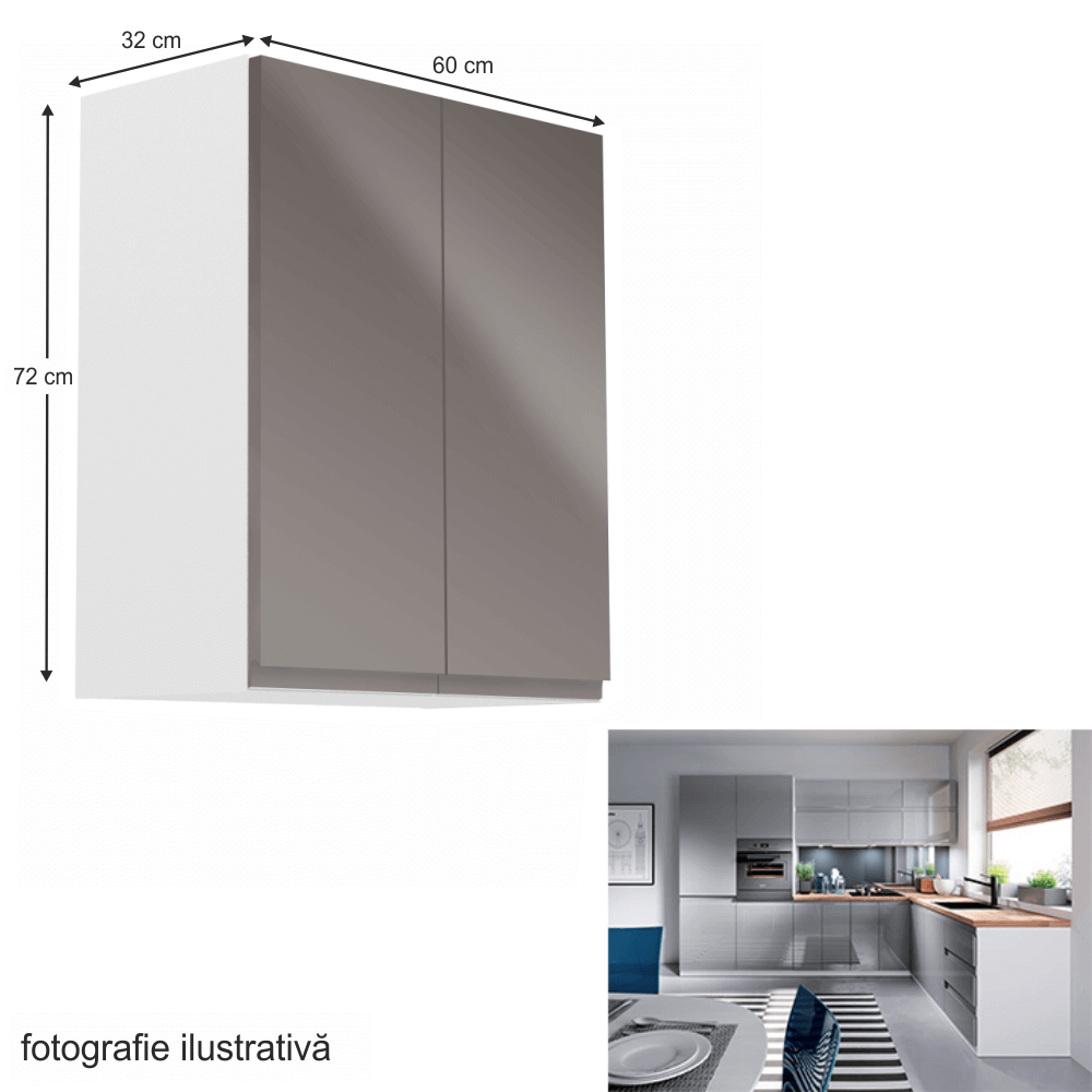 - Dulap superior, alb/gri extra lucios, AURORA G602F