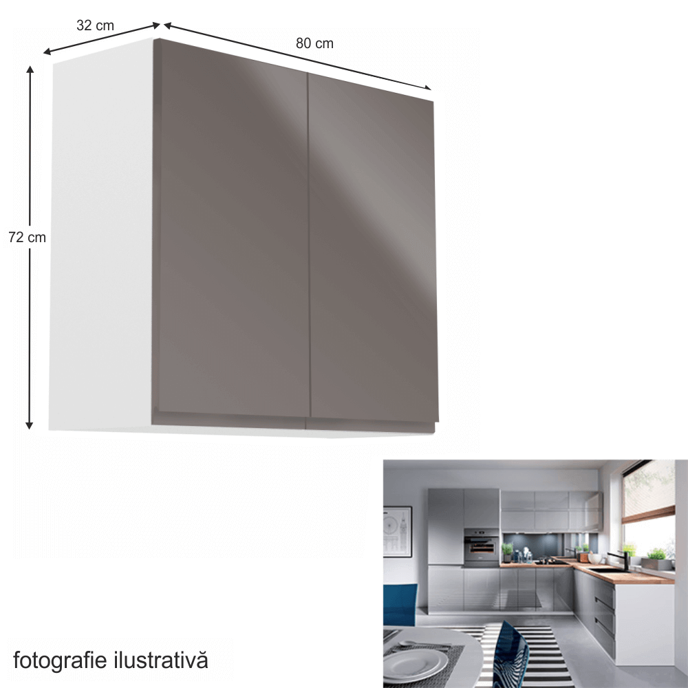 - Dulap superior, alb/gri extra lucios, AURORA G80