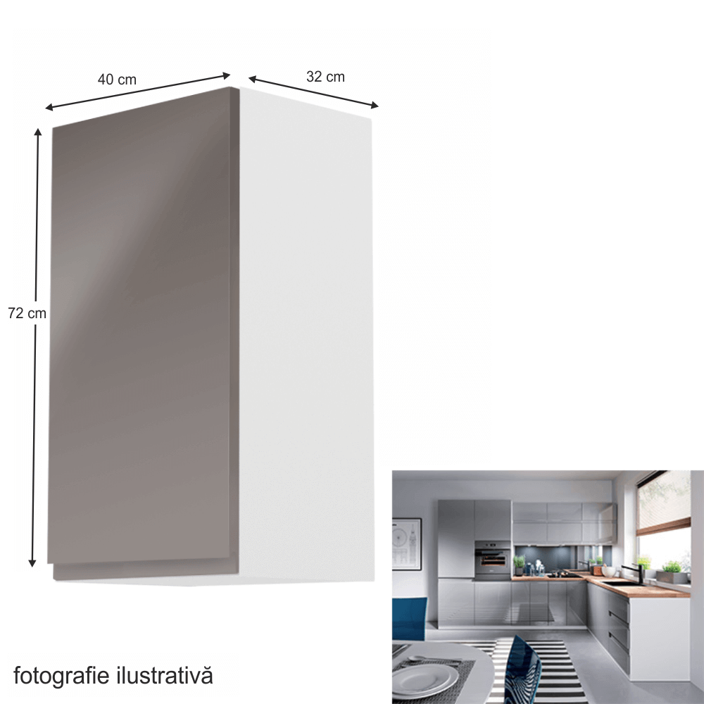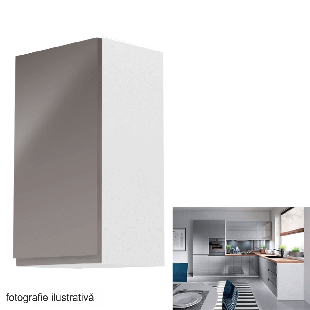 - Dulap superior, alb/gri extra lucios, stânga, AURORA G40