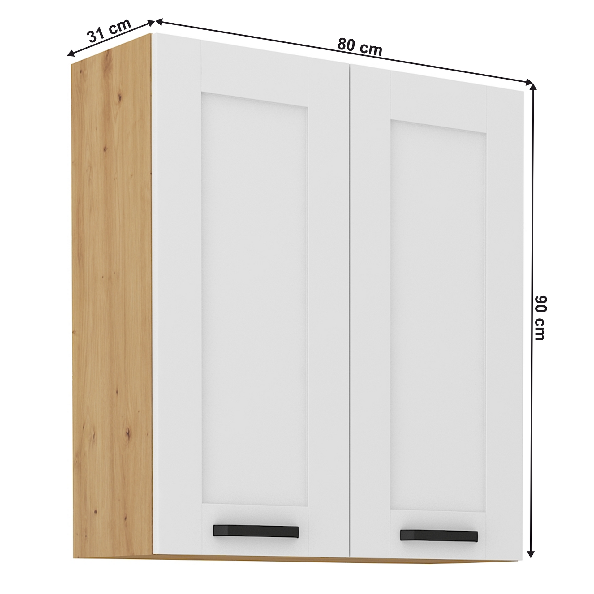 - Dulap superior, alb/stejar artisan, LULA 80 G-90 2 F