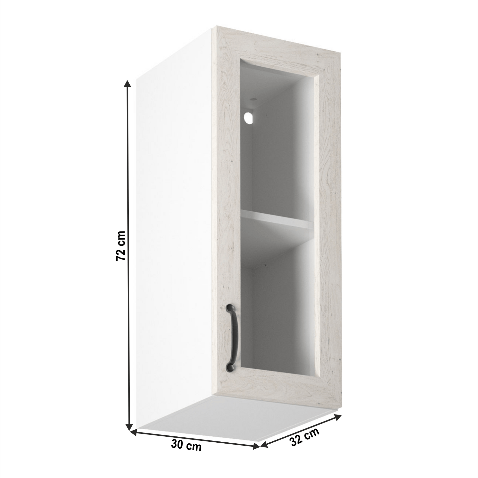 - Dulap superior, cu sticlă, alb/pin nordic, model dreapta, ROYAL G30S