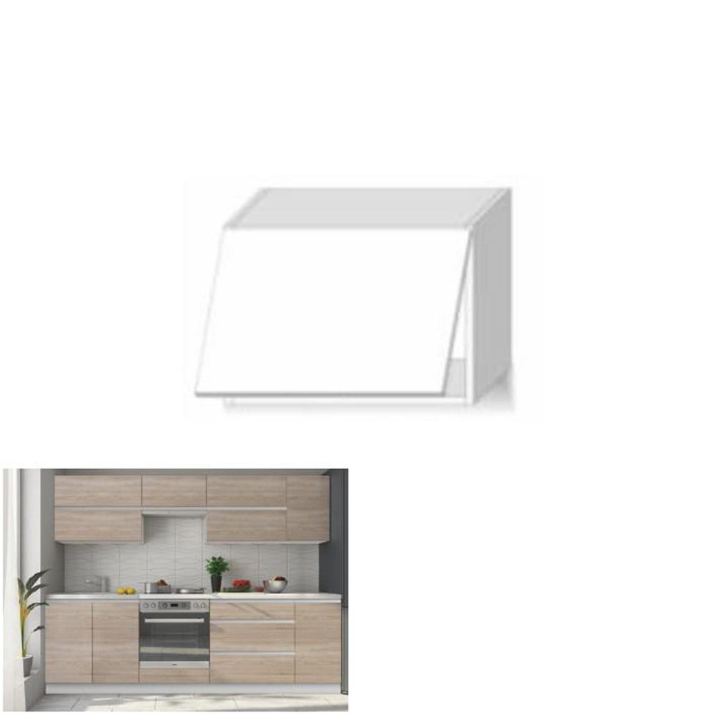 Dulap superior cu uşă orizontală din ansamblul de unităţi de bucătărie în stil şi finisaj modern.