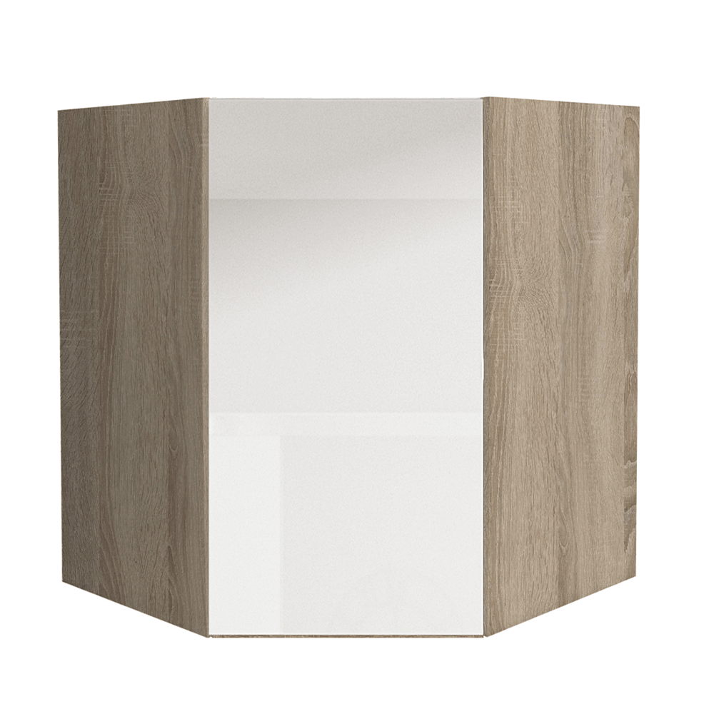 Dulap superior de colţ cu 2 uşi din ansamblul de unităţi de bucătărie în stil şi finisaj modern.