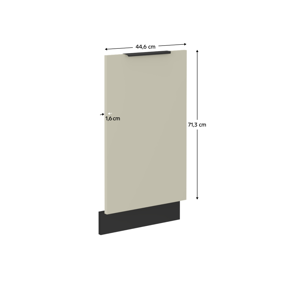 Material: DPD melaminat Culoare: caşmir Dimensiuni (Lxlxh): 44,6x1,6x71,3 cm Uşă pentru maşină de spălat vase încorporată Cu plintă/soclu Plinta de culoare: negru mat Cu mâner Culoare mâner: aluminiu Design modern Se livrează dezasamblate Dulapurile inferioare sunt livrate cu plinta inclusă, fără blat. Opţiunea de a achiziţiona blat de lucru din marmură roma la preţul de 339 Lei/ml. Opţiunea de a achiziţiona o chiuvetă universală LAY ON.
