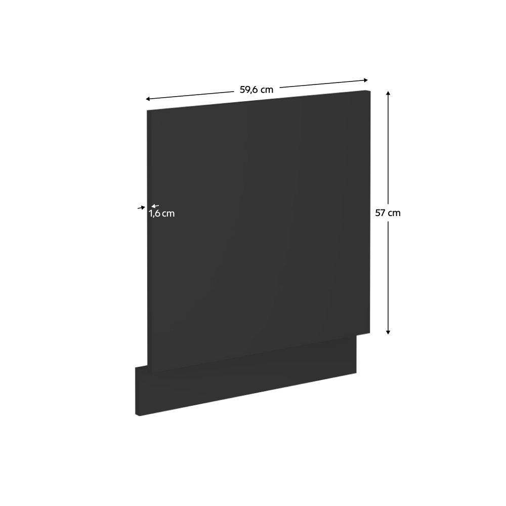 Material: DTD laminat Culoare: neagră Dimensiuni (Lxlxh): 59,6x1,6x57 cm Uşă pentru maşină de spălat vase încorporată Cu plintă/soclu Culoarea soclului: negru mat Design modern Fără mânere Se livrează dezasamblat Dulapurile din modularul inferior sunt livrate cu plintă (soclu), fără blat de lucru. Blatul de lucru cu o grosime de 3,8 cm poate fi comandat separat în finisaj de tip stejar artisan la preţul de 339 EUR/ml.
