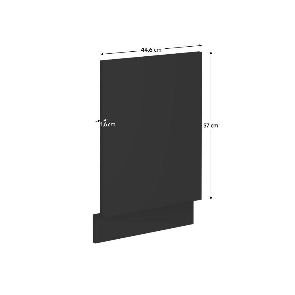 Material: DTD laminat Culoare: neagră Dimensiuni (Lxlxh): 44,6x1,6x57 cm Uşă pentru maşină de spălat vase încorporată Cu plintă/soclu Culoarea soclu: negru mat Design modern Fără mânere Livrat dezasamblat Dulapurile din sectorul inferior sunt livrate cu plintă (soclu), fără blat. Blatul de lucru cu o grosime de 3,8 cm poate fi comandat separat în finisaj de tip stejar artisan la preţul de 339 EUR/ml.