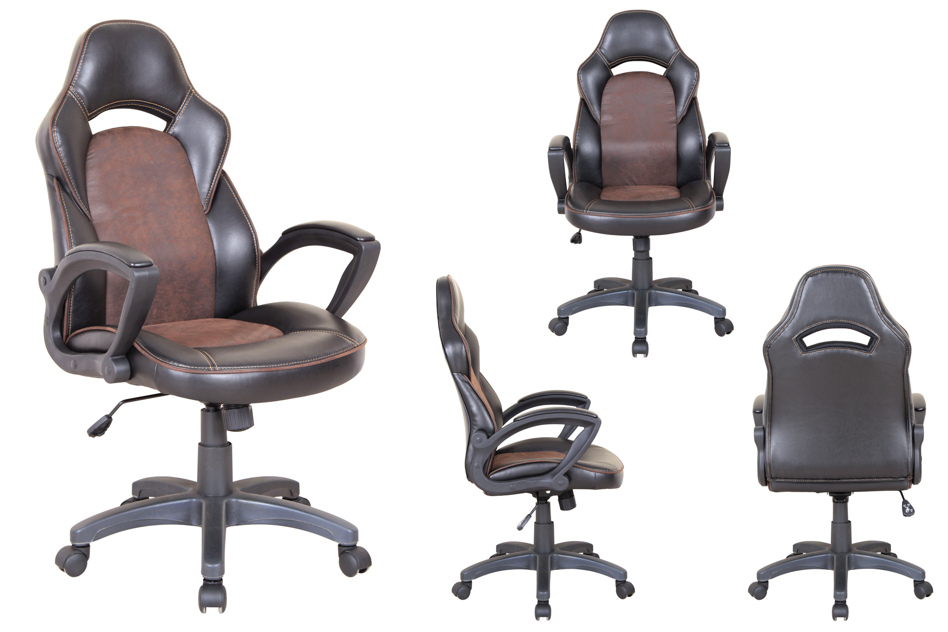 Tetieră integrată în spătarul scaunului; Brațele cromate acoperite cu imitație piele asigură o poziționare corectă a brațelor; Cusătura laterală orange completează aerul modern al scaunului; Dispune de piston pe gaz pentru reglarea înălțimii și mecanism pentru balans care poate fi blocat în poziție verticală; Mobilitatea în spațiul de lucru este asigurată de cele 5 roți ale bazei […]