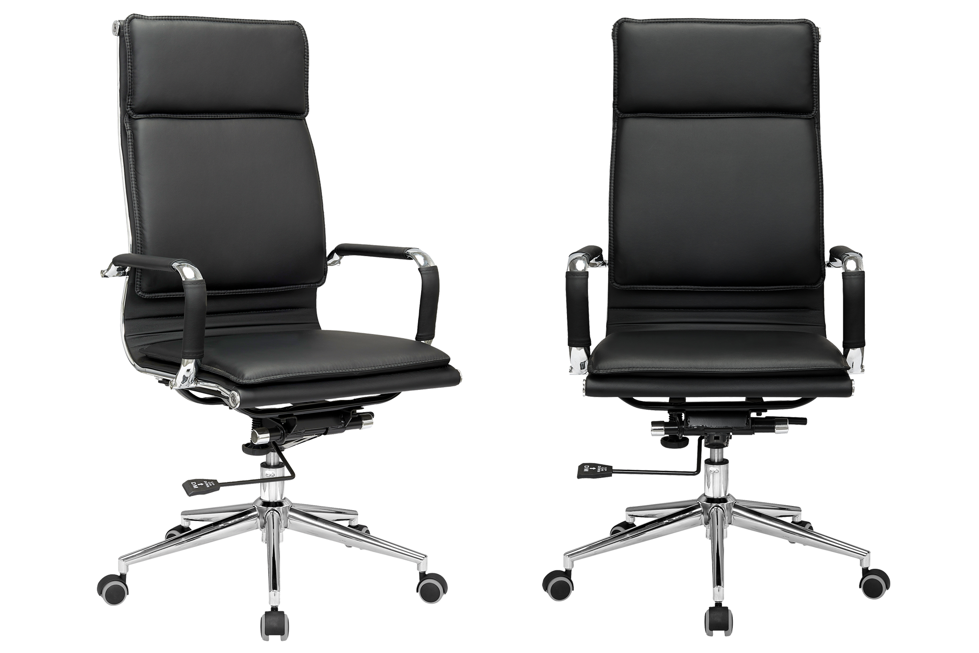 Design office cu linii moderne oferă prestanță spațiului în care este utilizat; Brațele cromate acoperite cu imitație piele; Capitonat cu perne tapițate pentru confort sporit; Dispune de piston pe gaz pentru reglarea înălțimii și mecanism pentru balans care poate fi blocat în poziție verticală.