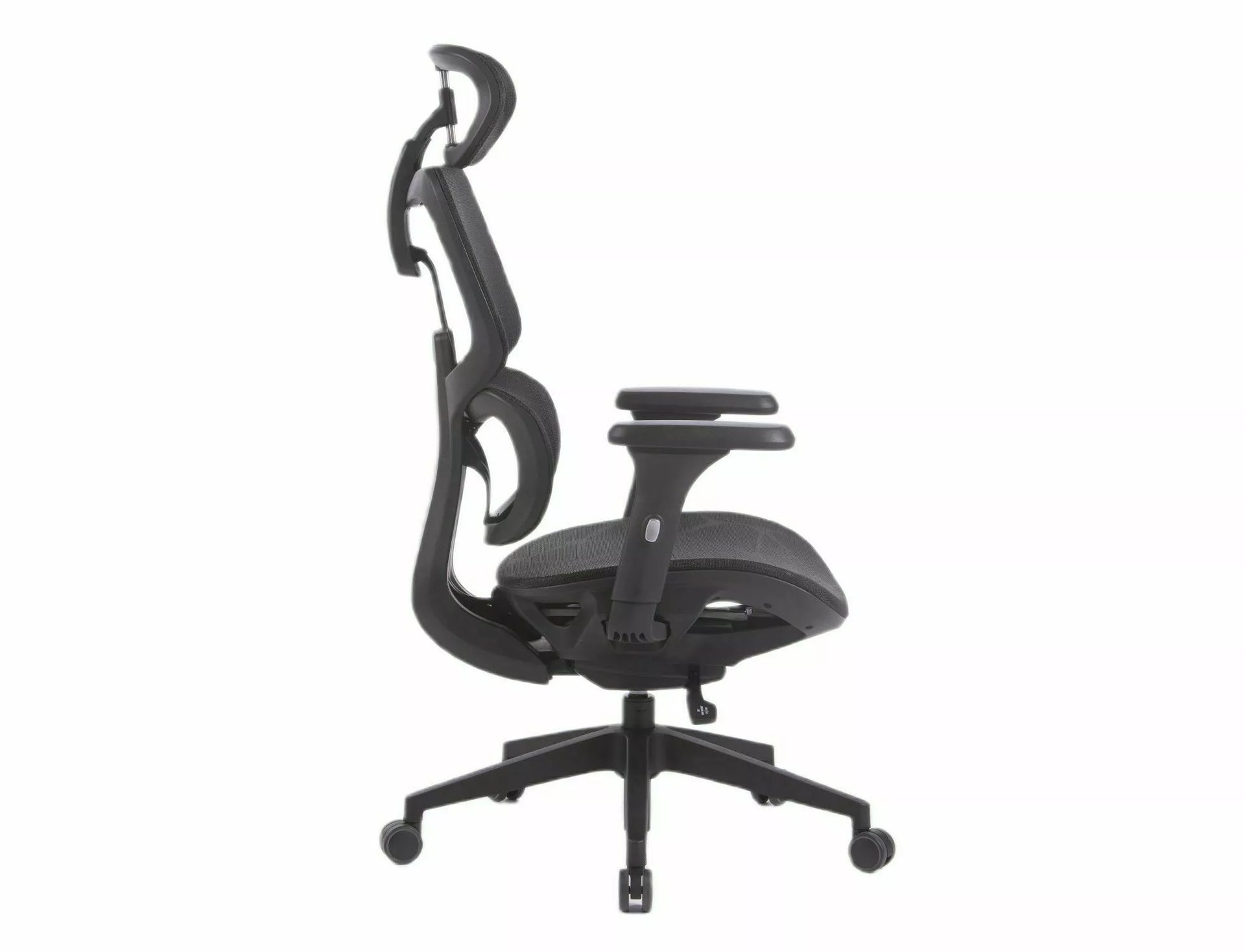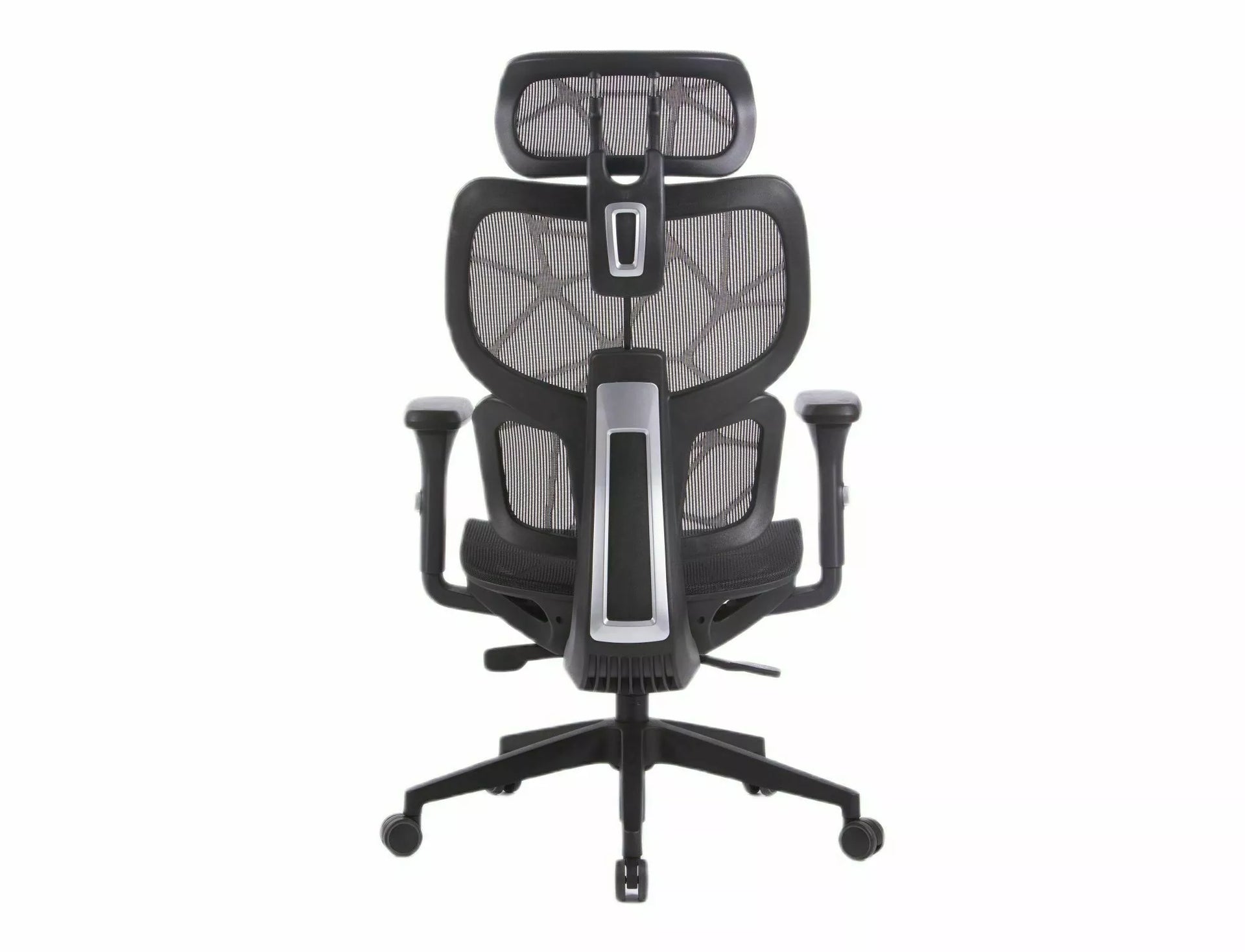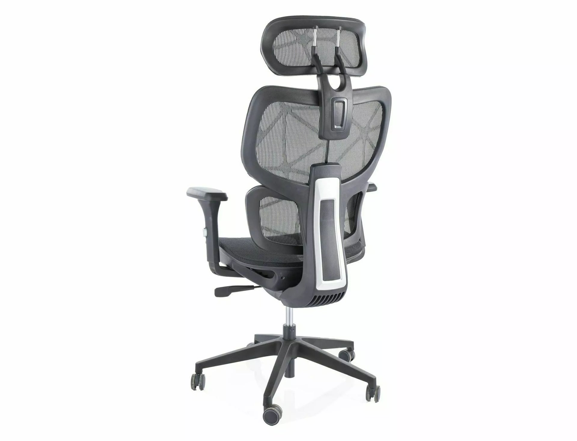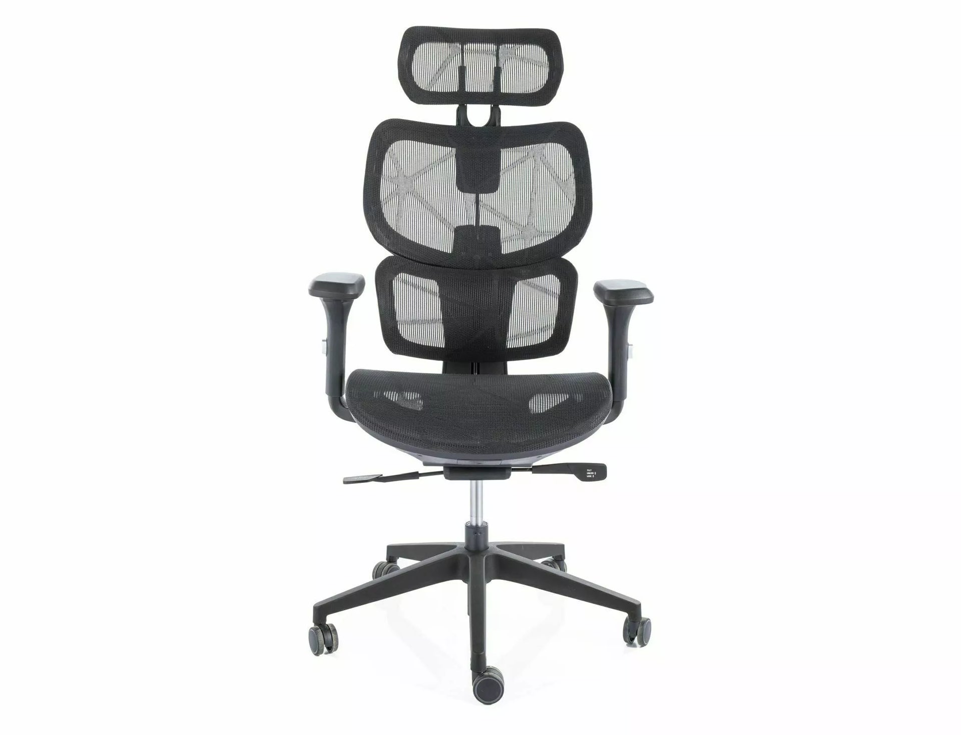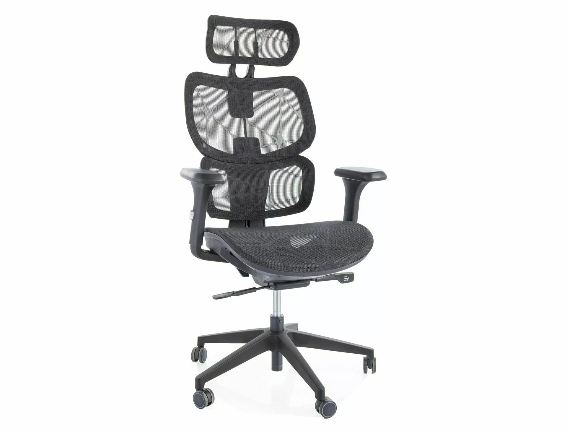 Fotiu pivotant, tapițerie: plasă, cadru: plastic, culoare: negru / negru. Multibloc, reglabil: cotiere 4D, tetiera, suport lombar.