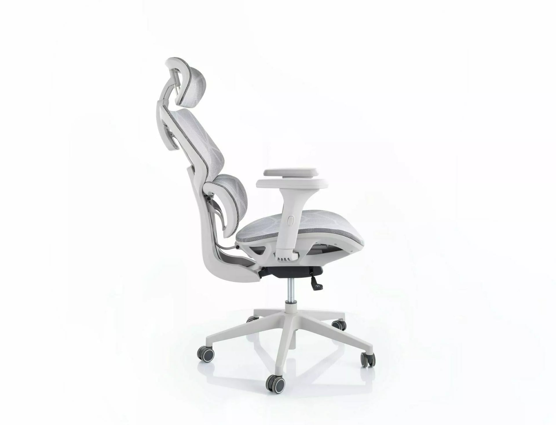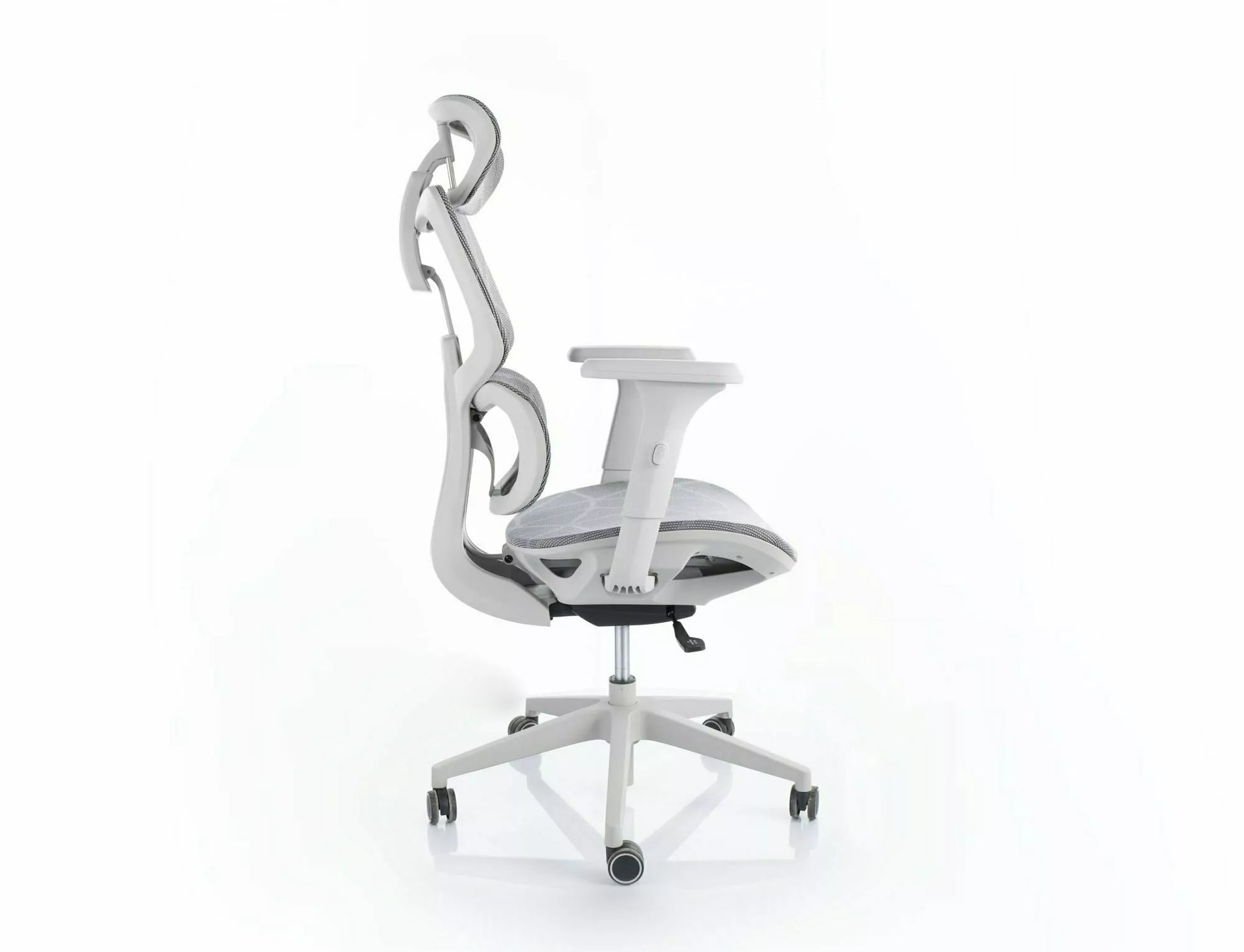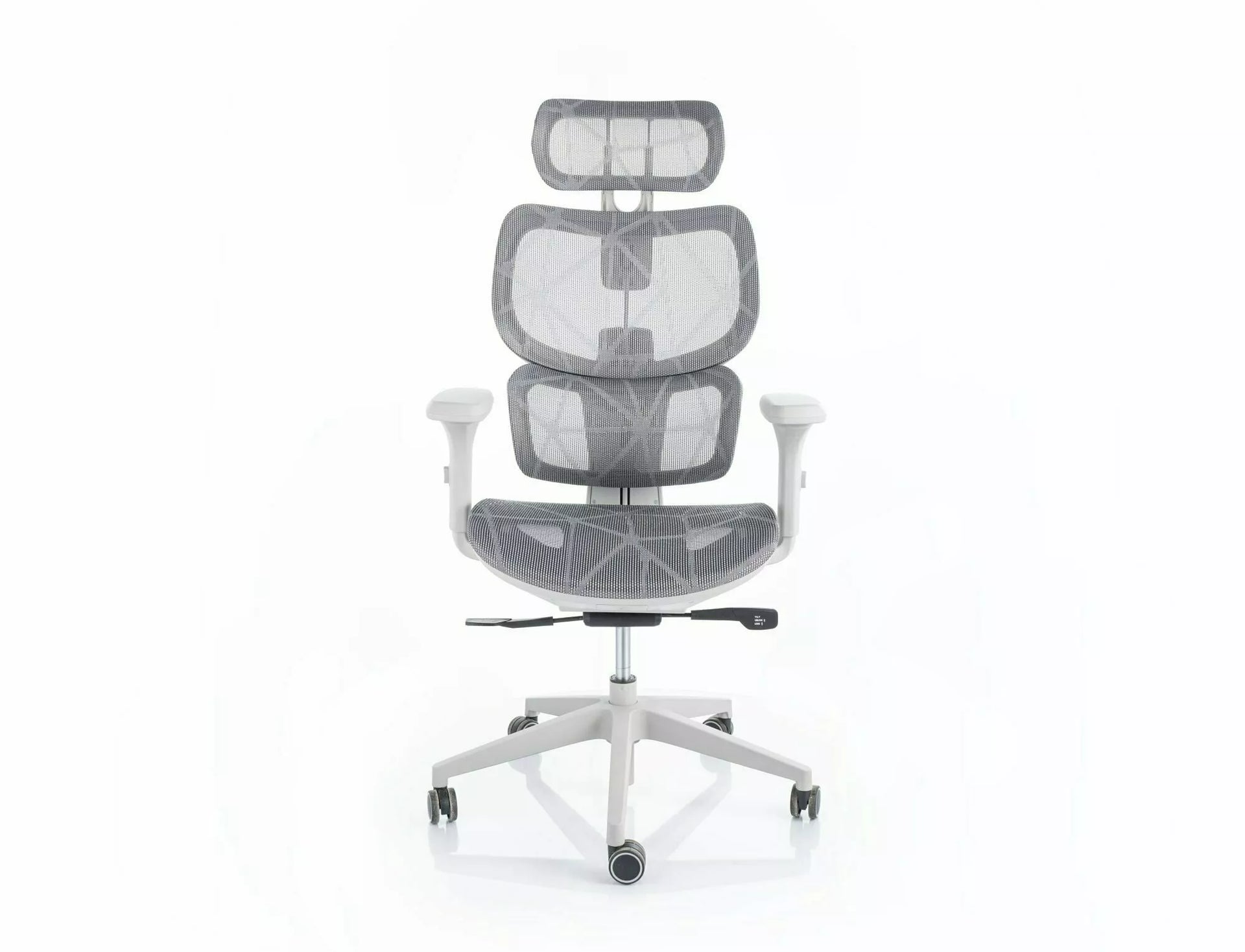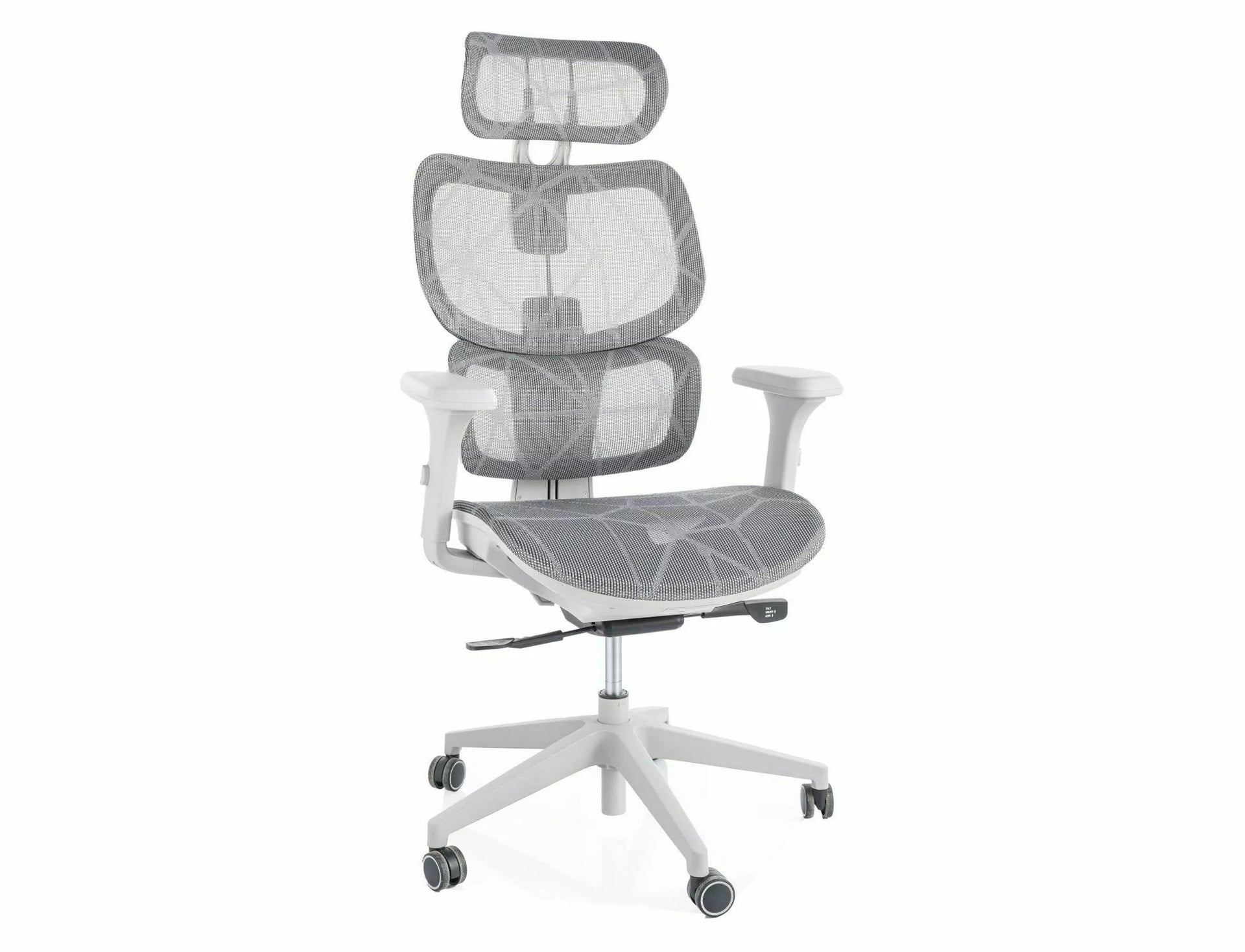 Fotiu pivotant, tapițerie: plasă, cadru: plastic, culoare: gri / gri. Multibloc, reglabil: cotiere 4D, tetiera, suport lombar.