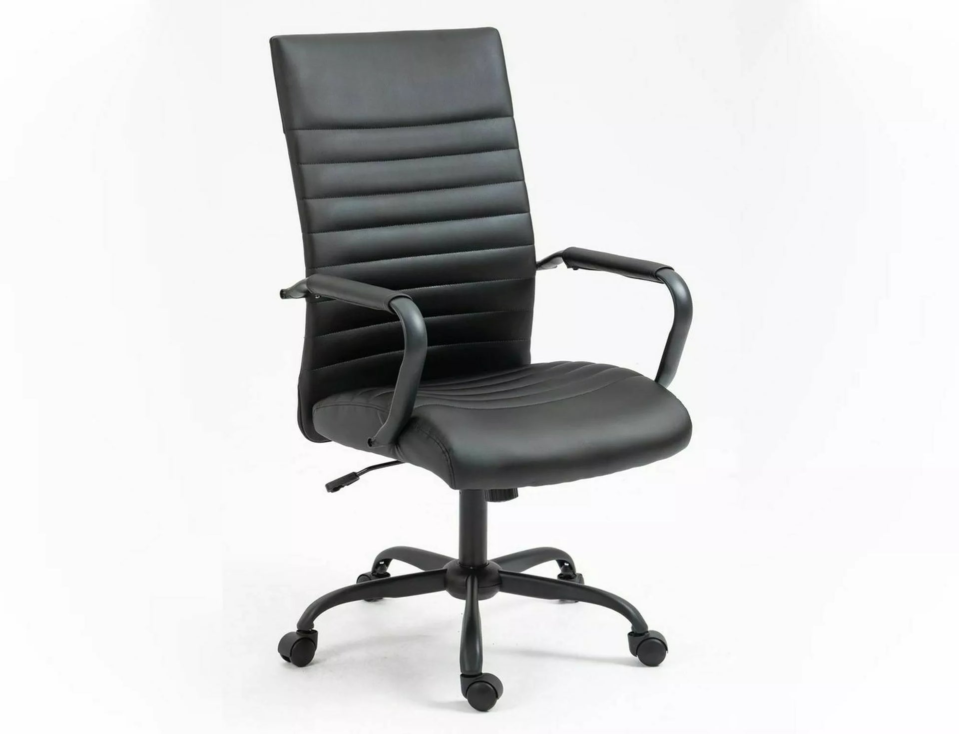 Fotliu pivotant, piele sintetică, culoare: negru, mecanism TILT, cotiere fixe.