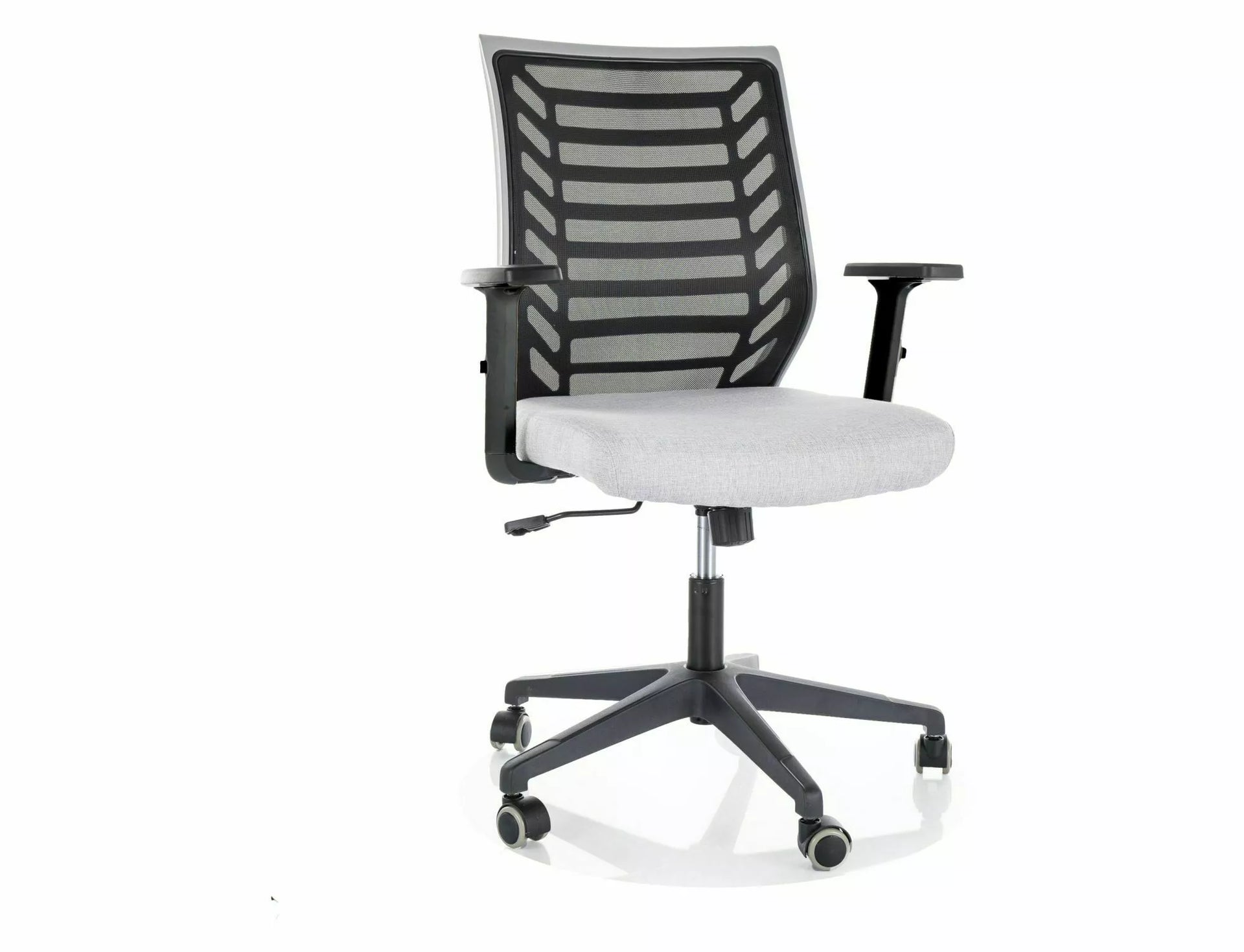 Fotiu pivotant, tapiterie: stofa + plasa, cadru: plastic, culoare: gri + negru / negru. Mecanism TILT, cotiere reglabile.