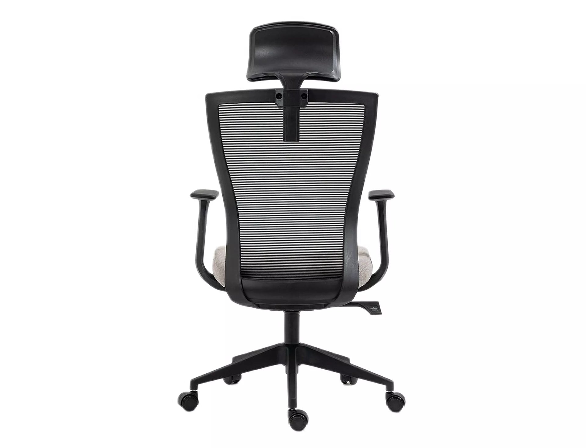 Fotliu pivotant, stofa/plasa, culoare: gri/negru, cadru plastic, culoare: negru, multibloc, cotiere fixe, tetiera reglabila.