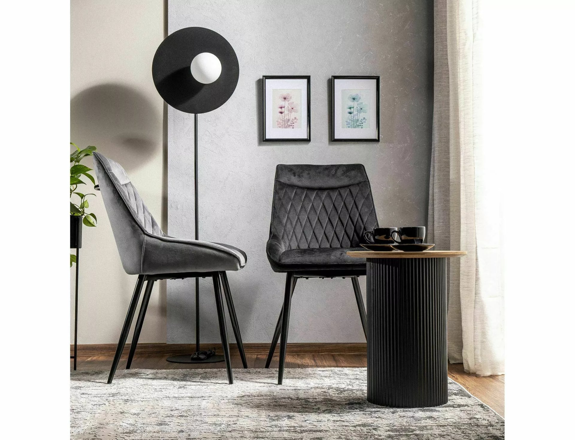 Scaun, tapițerie: țesătură de catifea Bluvel, cadru: metal, culoare: 14 gri / negru mat. Mâner pe spătar.