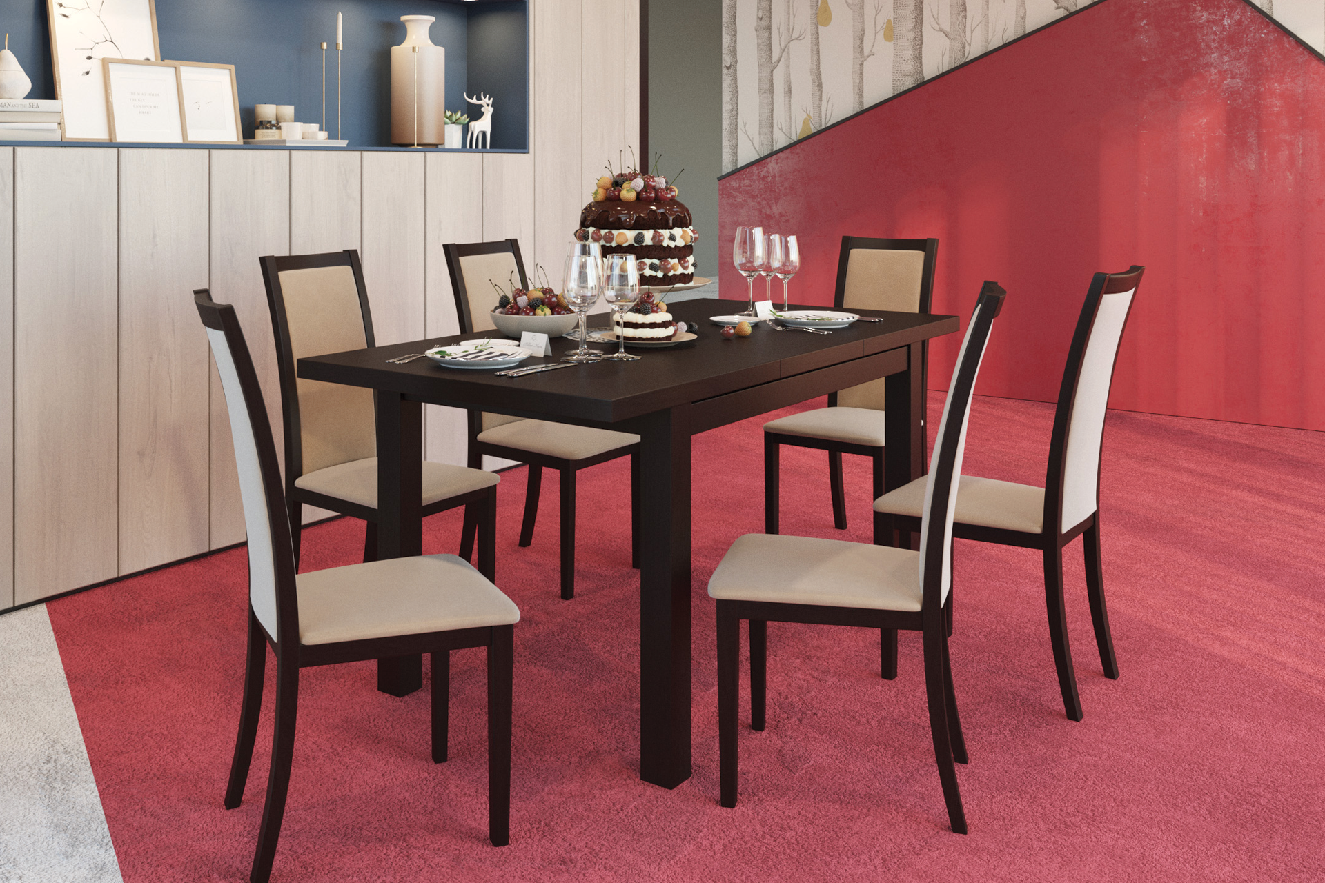 - Lemn cu finisaj wenge, ciocolată – tapițerie Jungle 04 Beige;