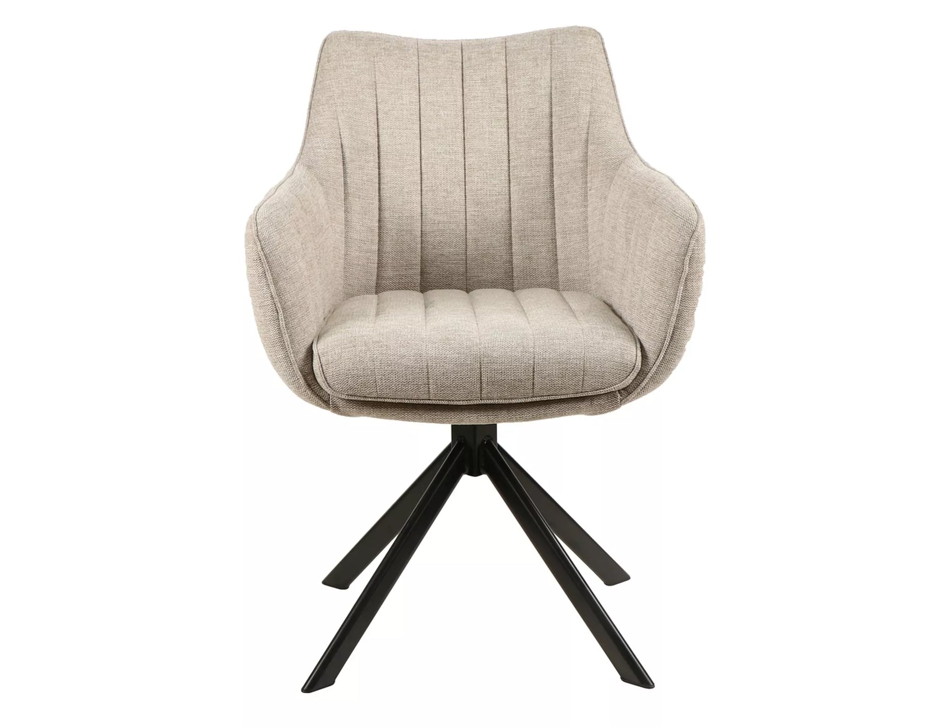 Scaun, material Brego, culoare: bej deschis 31, cadru: metal, negru mat. Scaunul poate fi rotit la 180 de grade, cu funcție de revenire la poziția inițială.