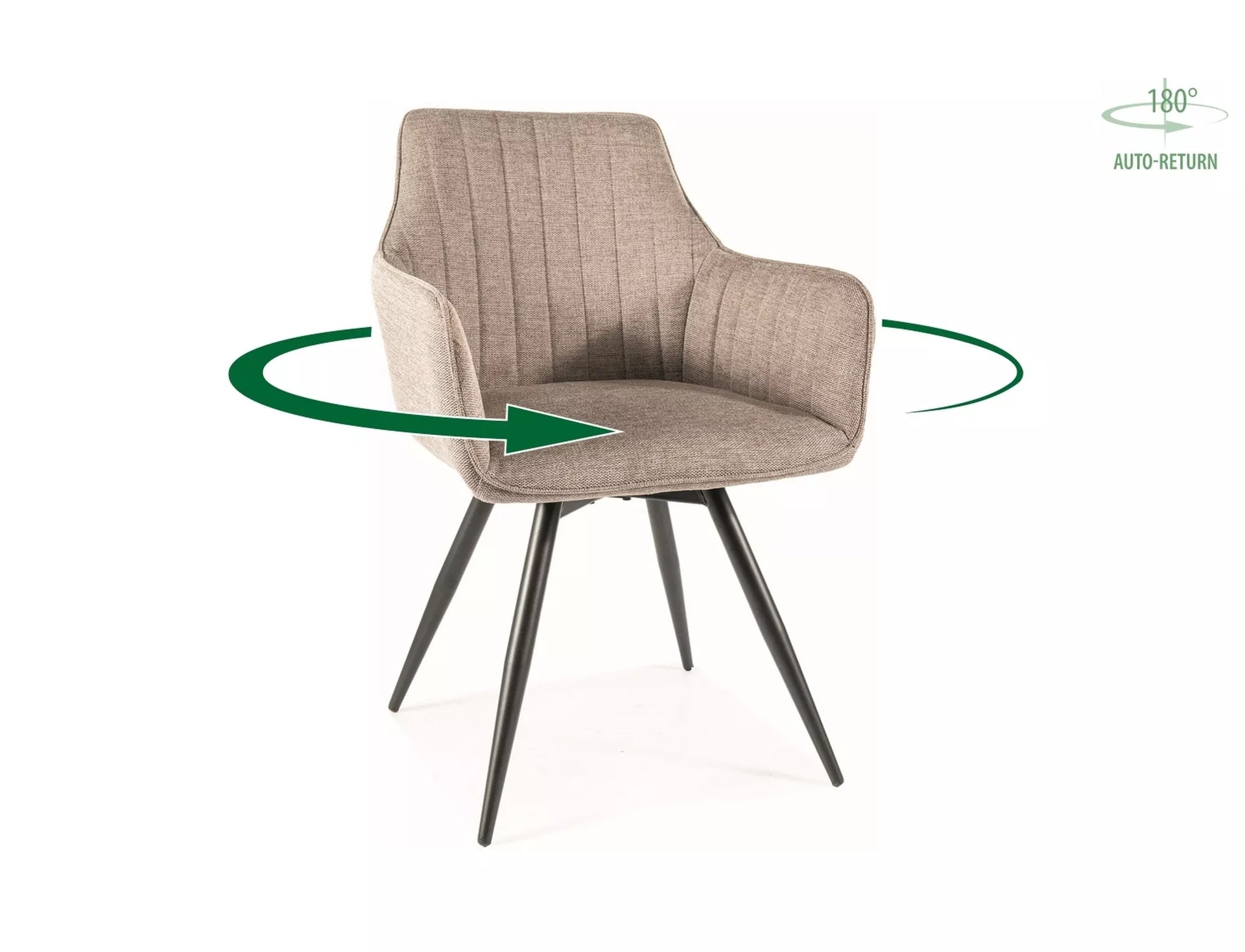 Scaun, material Brego, culoare: bej 34, cadru: metal, negru mat. Scaunul poate fi rotit la 180 de grade, cu funcție de revenire la poziția inițială.