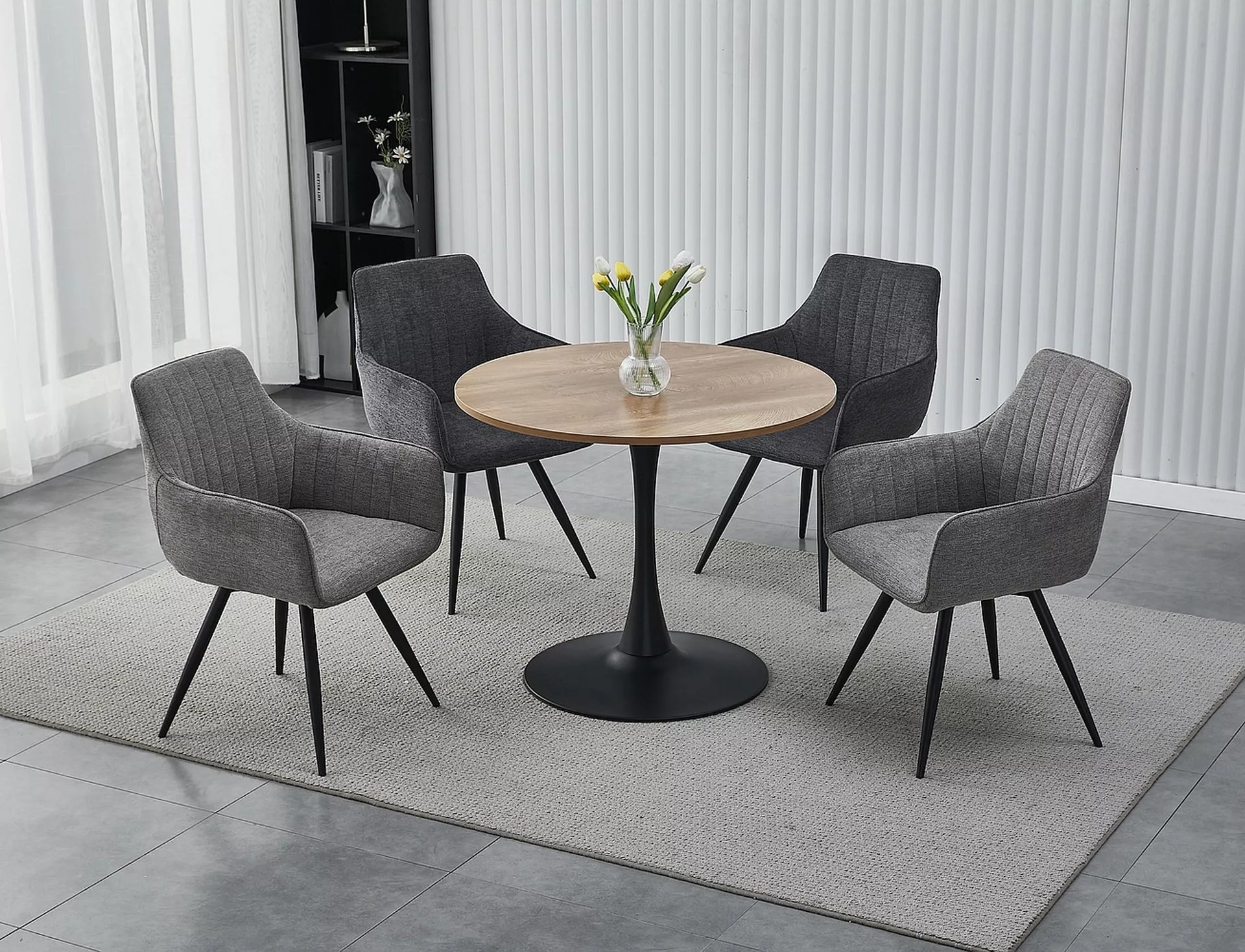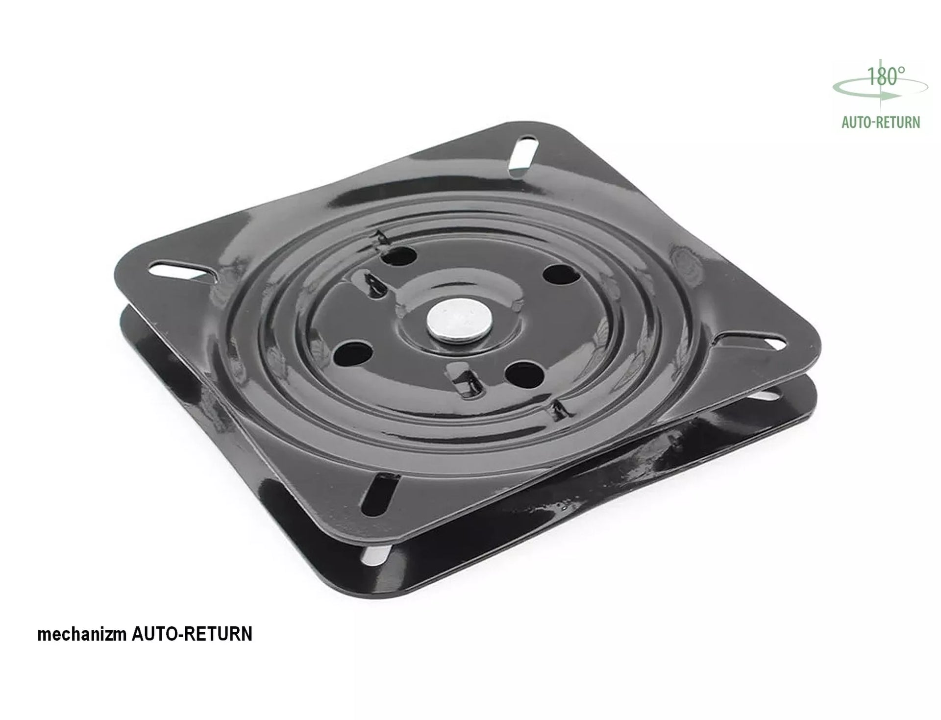 Scaun, material Brego, culoare: gri închis 18, cadru: metal, negru mat. Scaunul poate fi rotit la 180 de grade, cu funcție de revenire la poziția inițială.