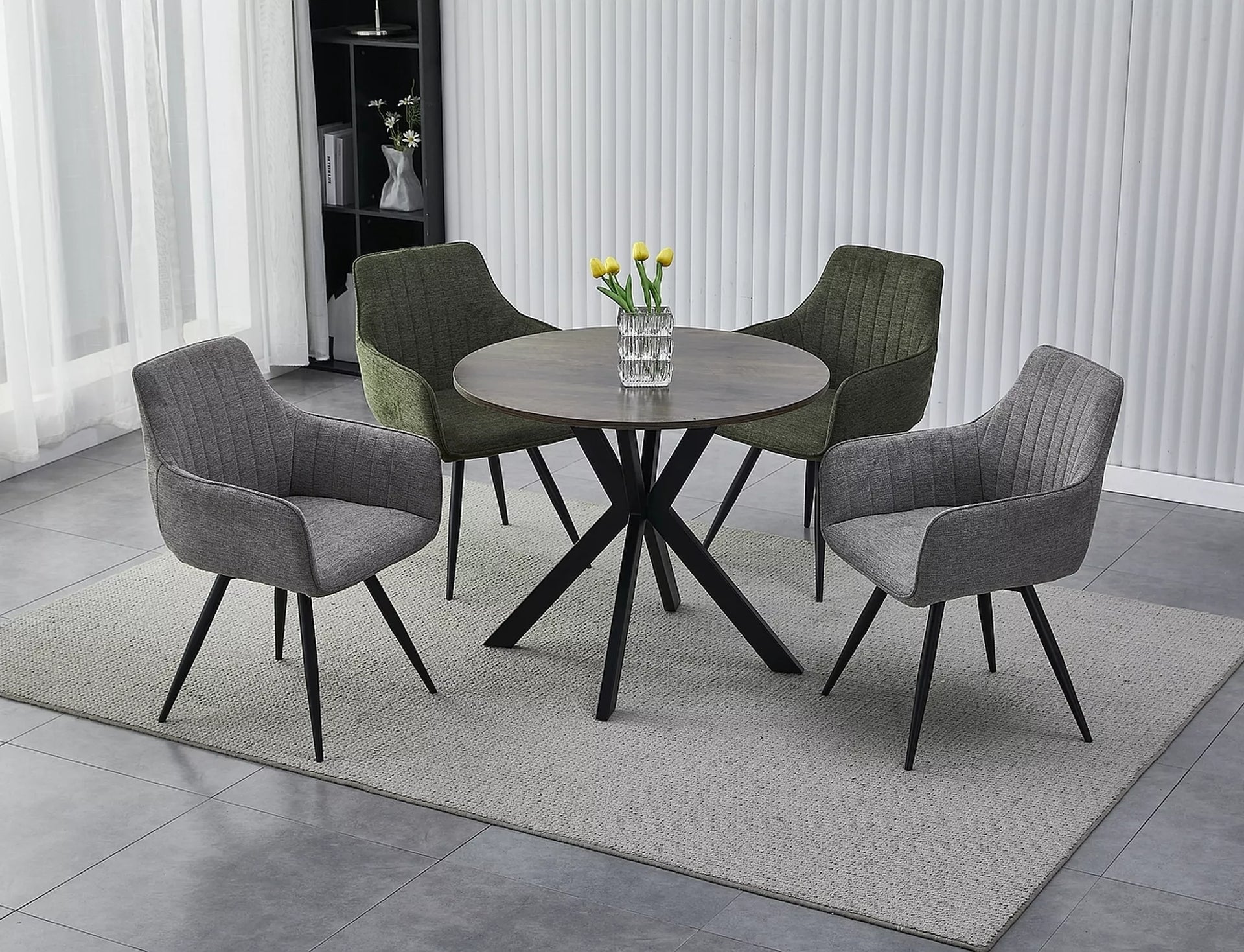 Scaun, material Brego, culoare: olive 77, cadru: metal, negru mat. Scaunul poate fi rotit la 180 de grade, cu funcție de revenire la poziția inițială.