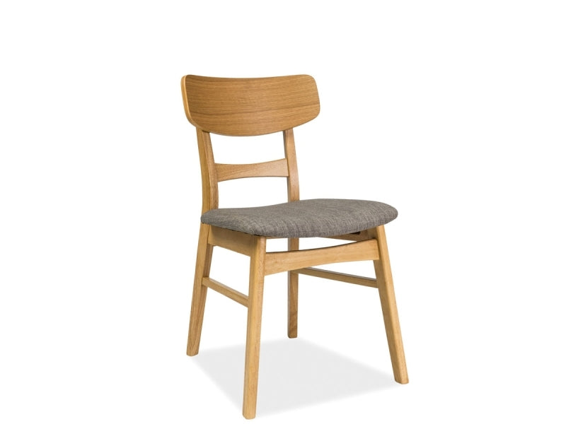 Scaun, scaun tapitat, stofa, culoare: gri, robinet. 40, cadru: lemn, culoare stejar