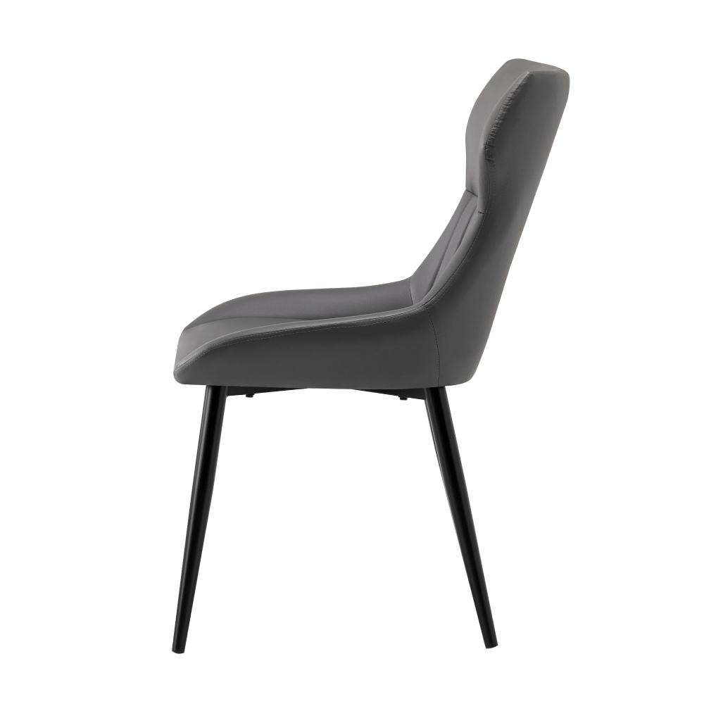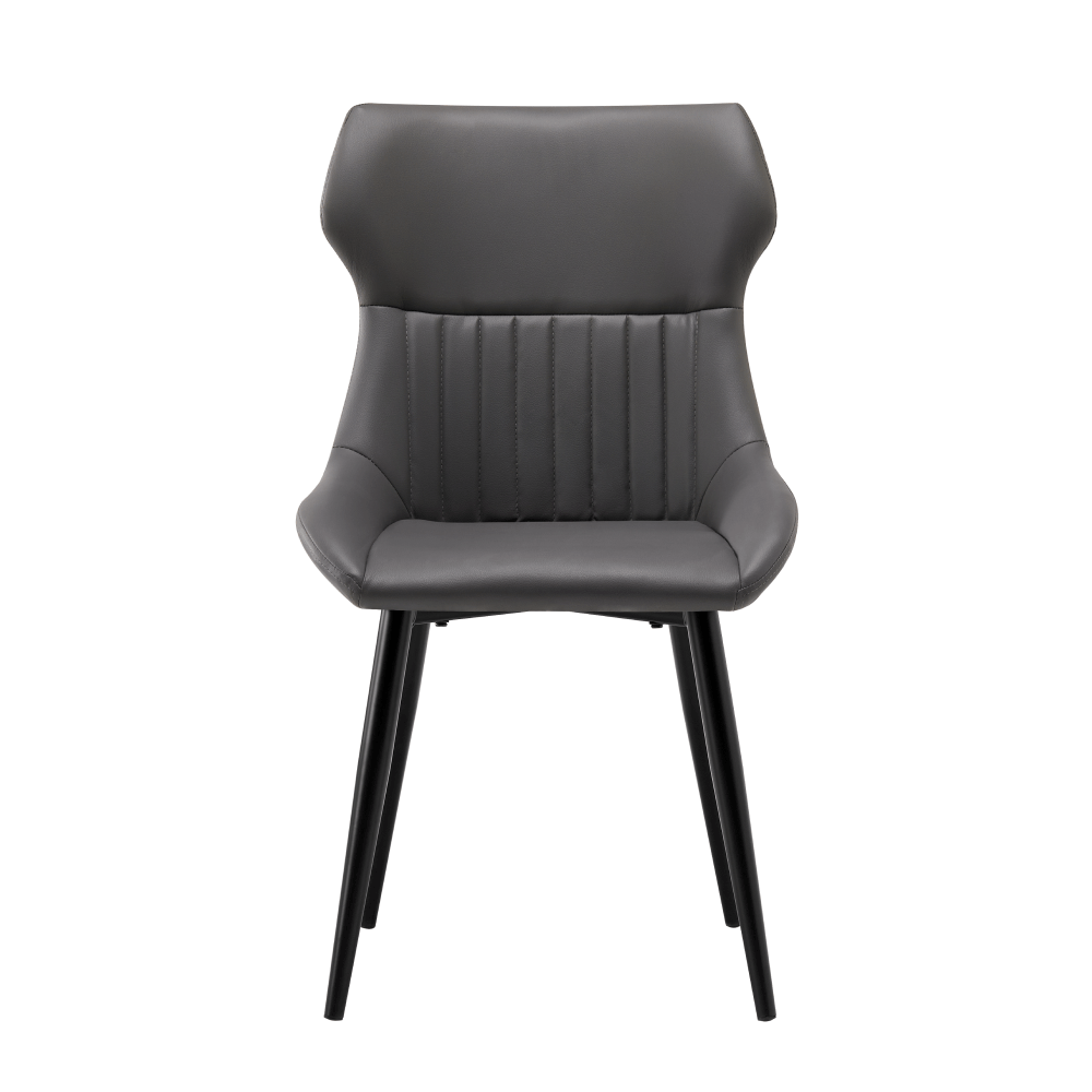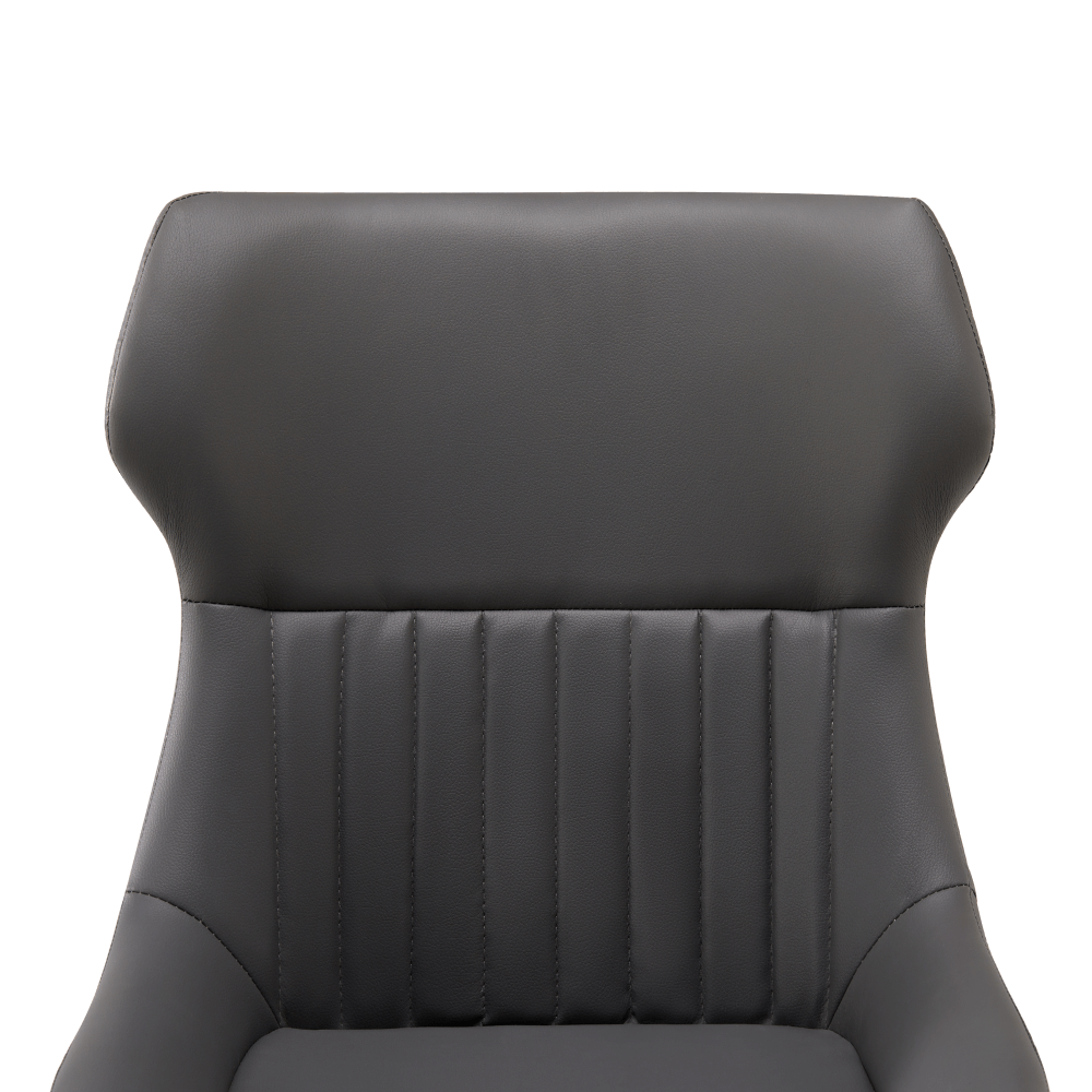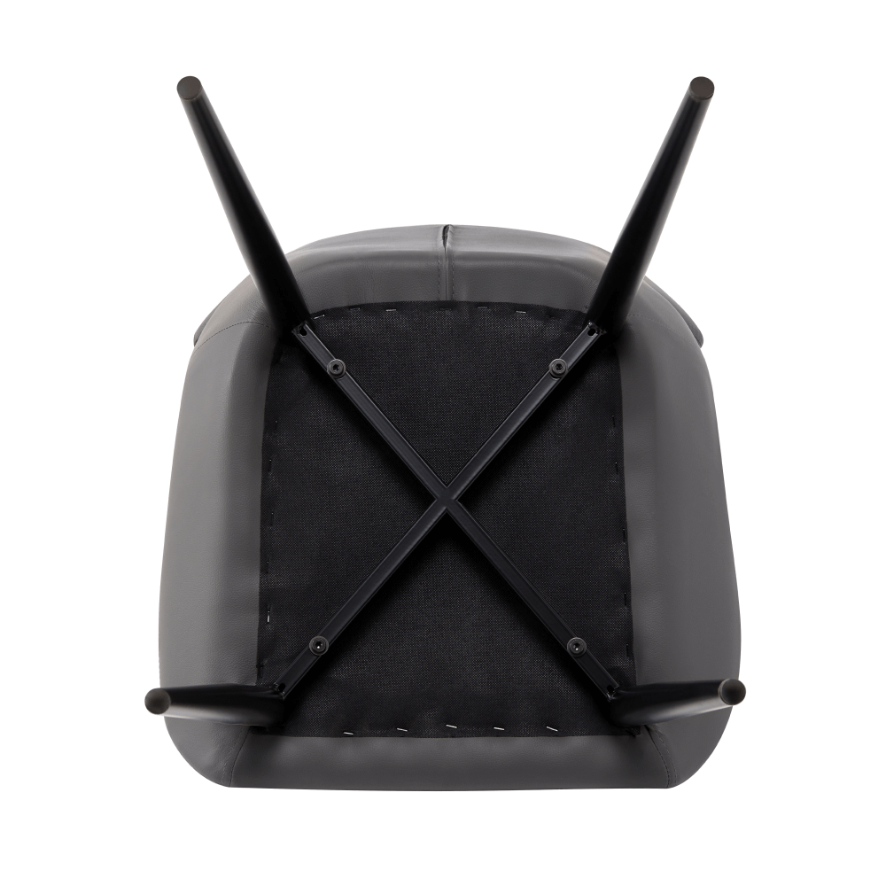 Material: piele ecologică / metal Rezistenţa ţesăturii conform testului Martindale: 100.000 de cicluri de frecare Culoare: gri închis / albă Dimensiuni (LxAxÎ): 50x58x85,5 cm Înălţime scaun: 43 cm Adâncime scaun: 41 cm Lăţime scaun: 49 cm Înălţime spătar: 45 cm Lăţime spătar: 46,5 cm Modern Capacitate de încărcare: 100 kg Aspect atractiv Cusături de calitate Livrat dezasamblat