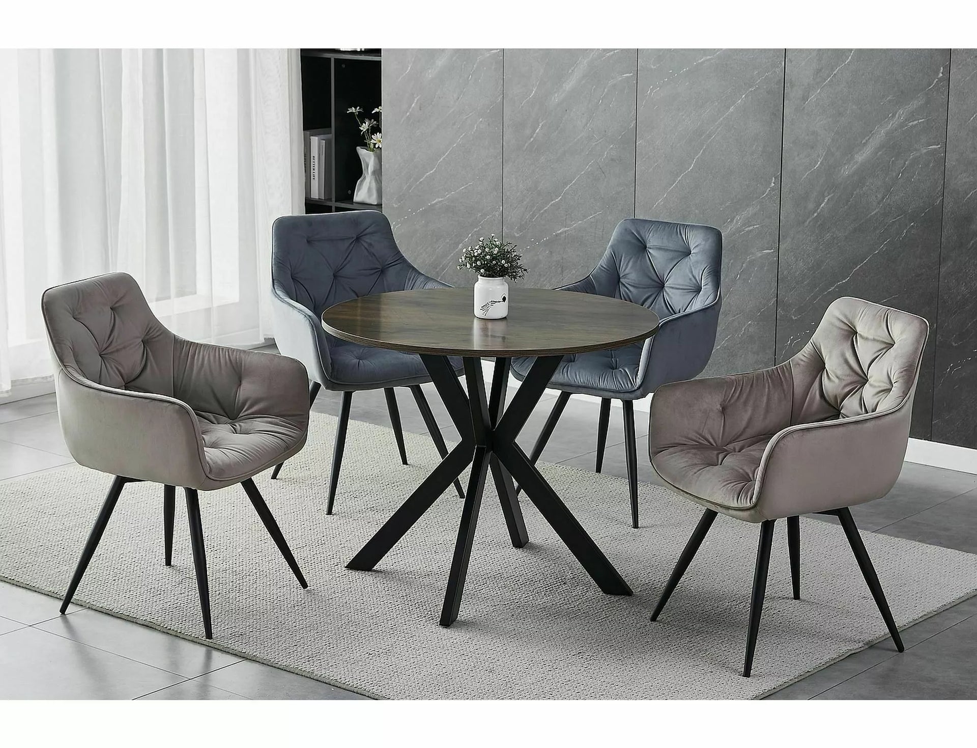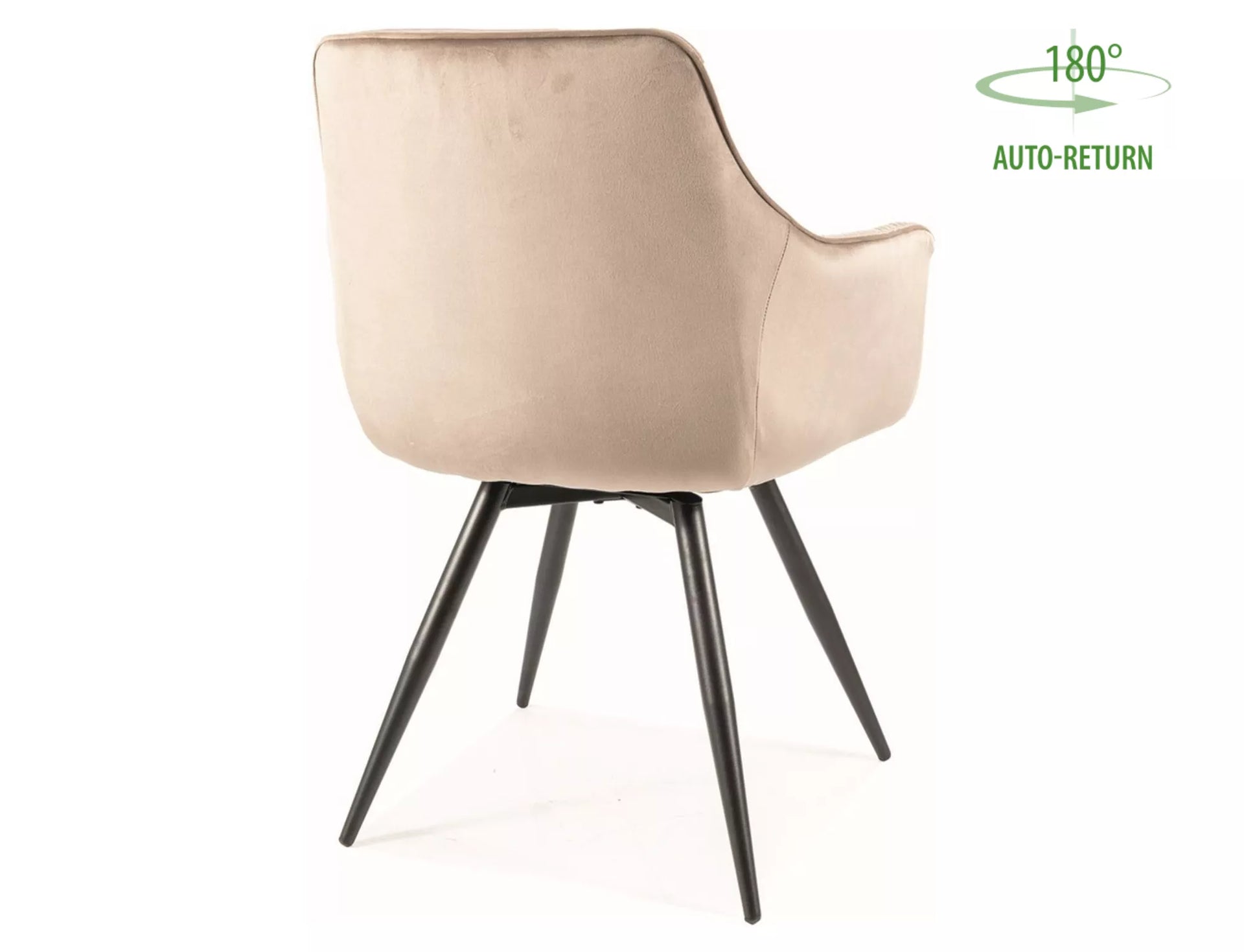 Scaun, țesătură catifea Bluvel, culoare: bej închis 40, cadru: metal, negru mat. Scaunul poate fi rotit la 180 de grade, cu funcție de revenire la poziția inițială.