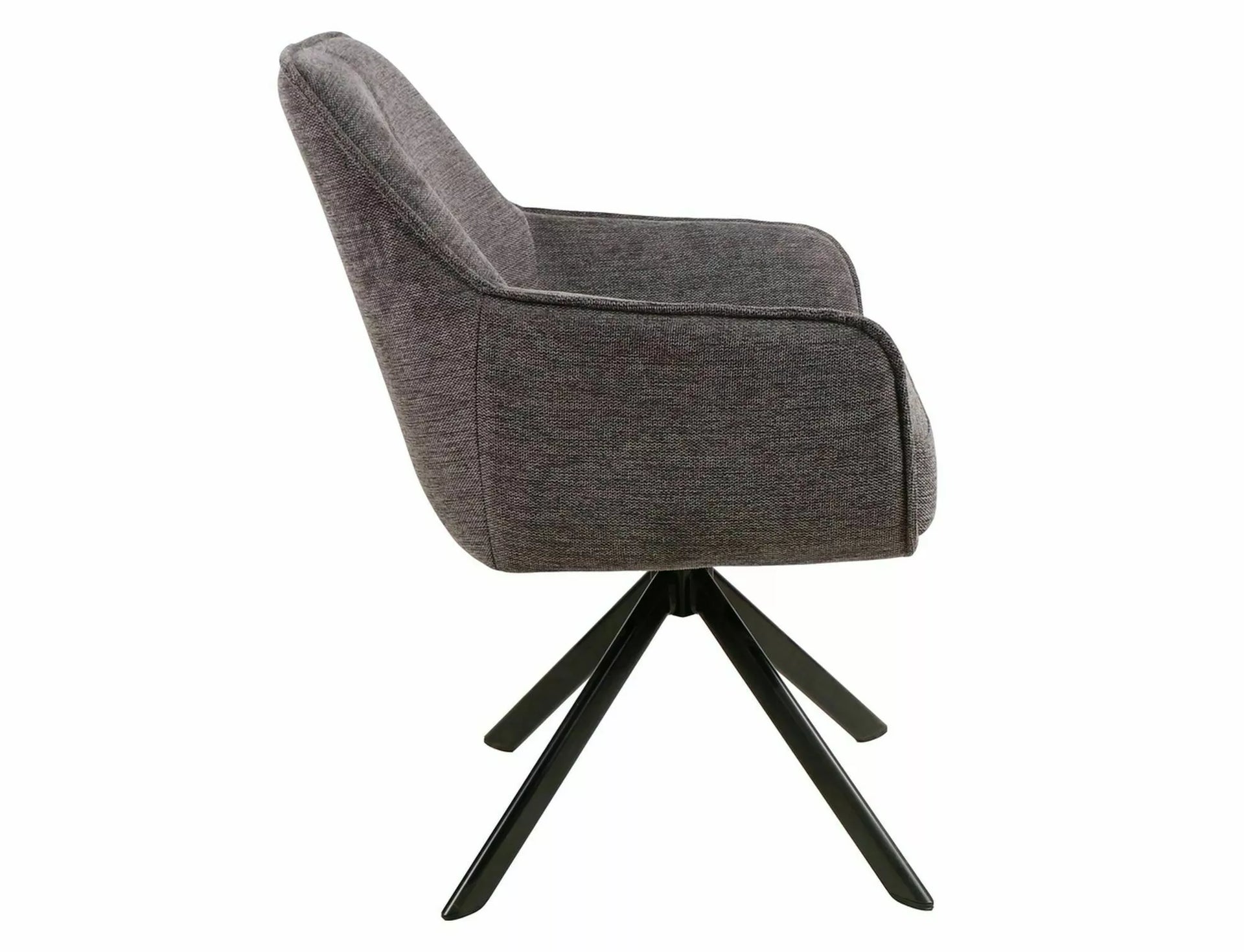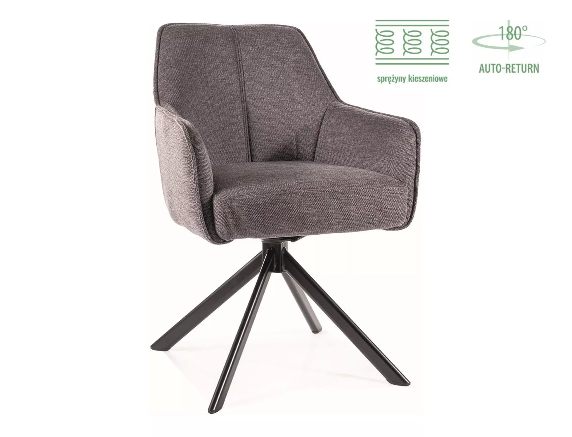 Scaun, material Brego, culoare: gri închis 18, cadru: metal, negru mat. Scaunul poate fi rotit la 180 de grade, cu functie de revenire la pozitia initiala. Scaunul este echipat cu arcuri buzunate.