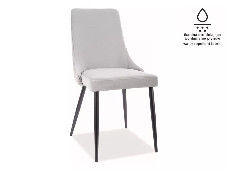 Scaun, material catifea Matt Velvet 85 - gri / metal, negru mat. Spatele spătarului are matlasare decorativă cu diamante.