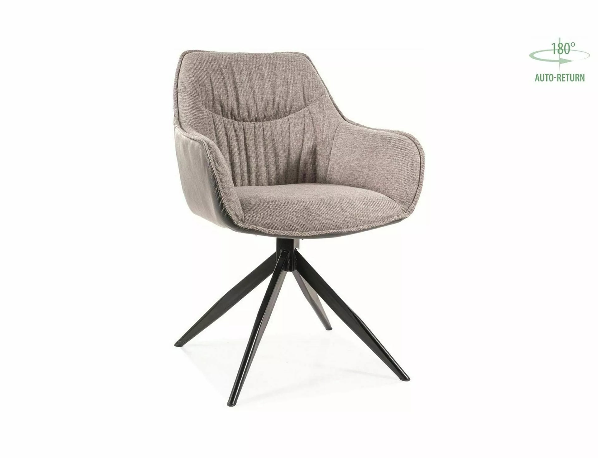 Scaun, material Brego + piele sintetica Buffalo (spatar), culori: gri 07 / gri 06, cadru: metal, negru mat. Scaunul poate fi rotit la 180 de grade, cu funcție de revenire la poziția inițială.