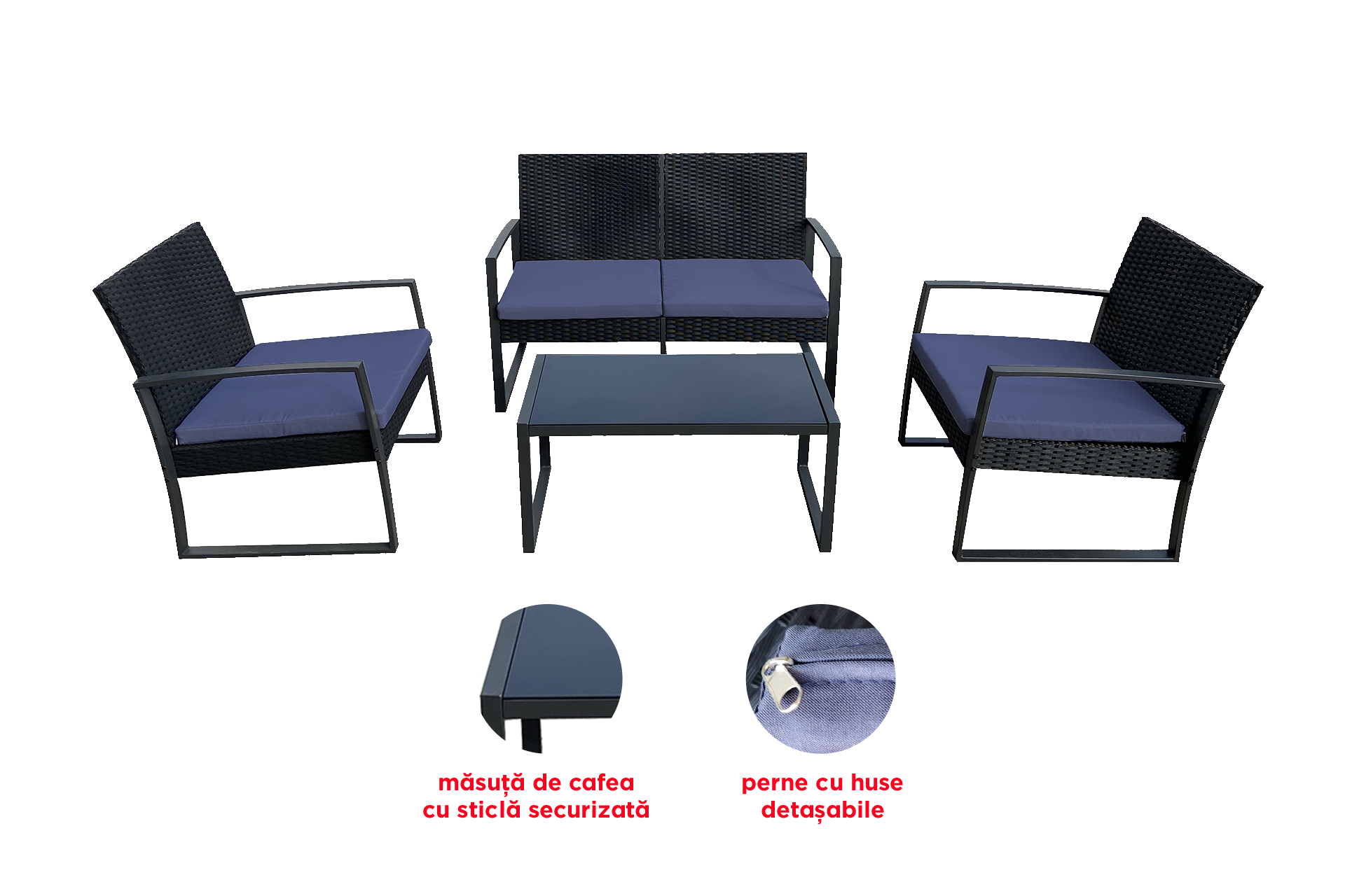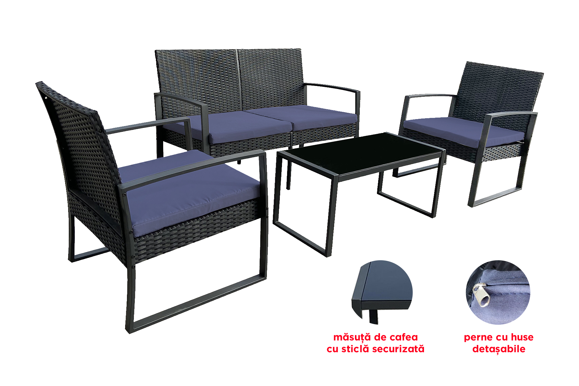 Un set de mobilier care vă creează mediul necesar pentru a vă bucura de timpul liber petrecut pe terasa sau în grădina ta!