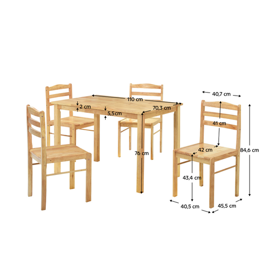 Set de sufragerie 1+4, lemn masiv, natural, LOAK